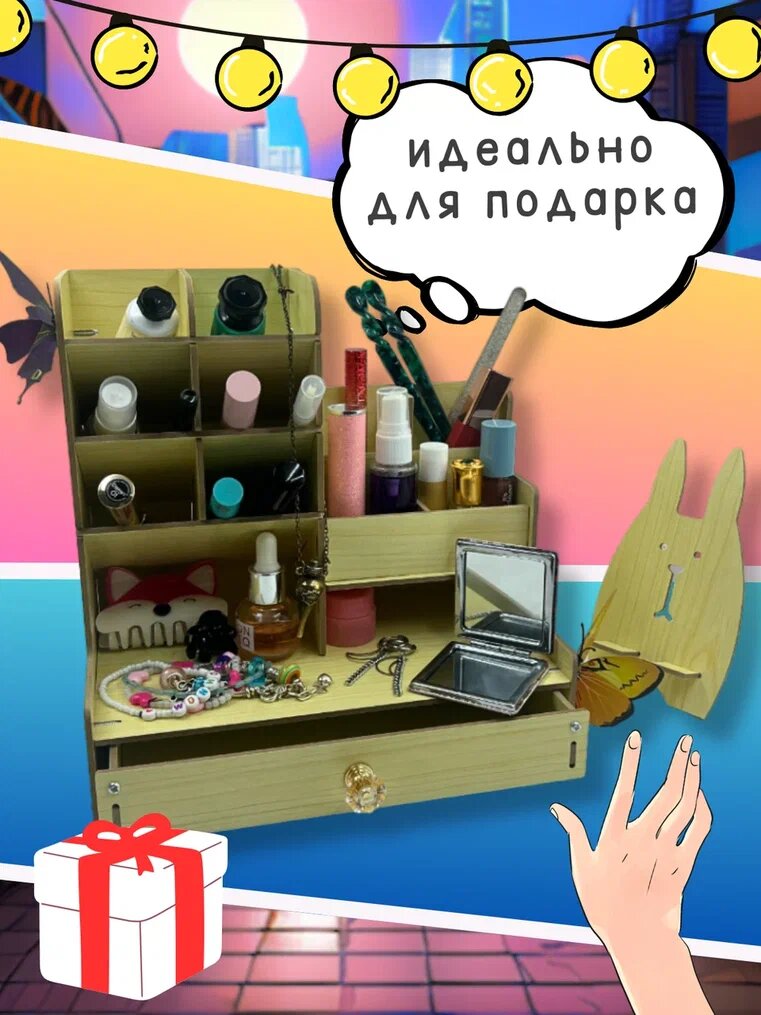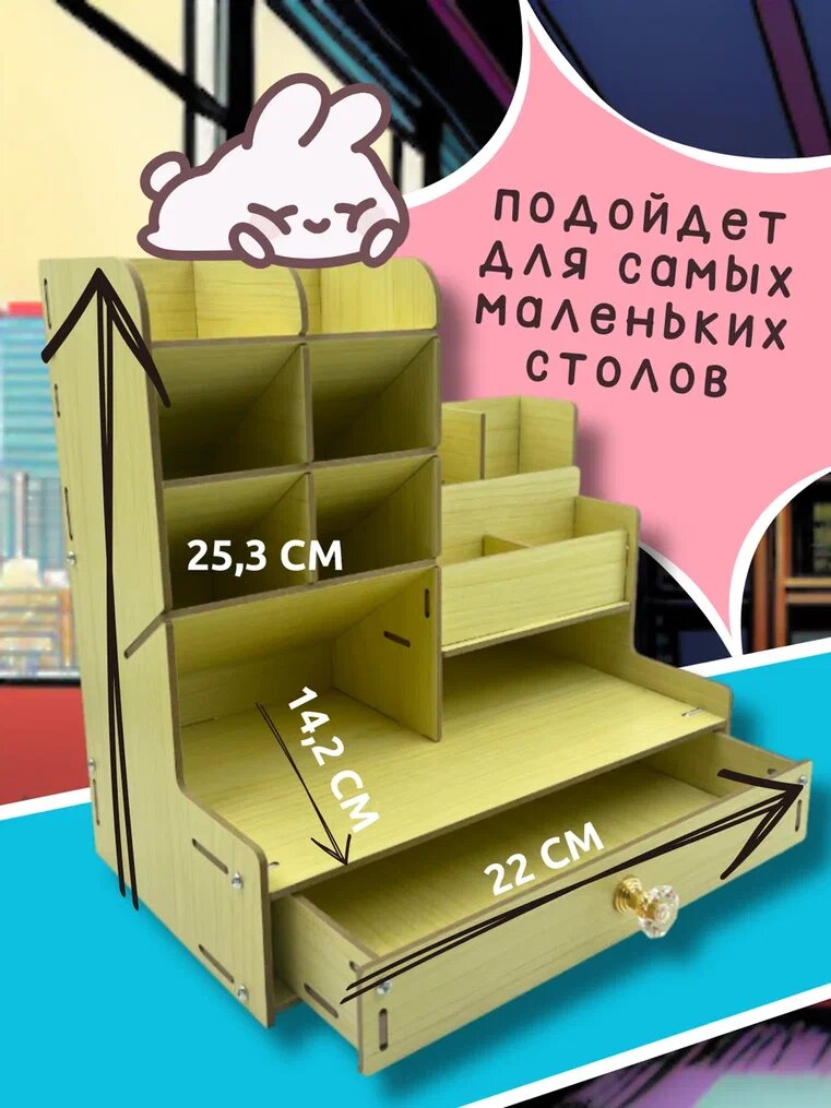 Органайзер для канцелярии настольный AXLER для ручек, карандашей и маркеров, подставка для косметики с ящиком МДФ дерево интересное: