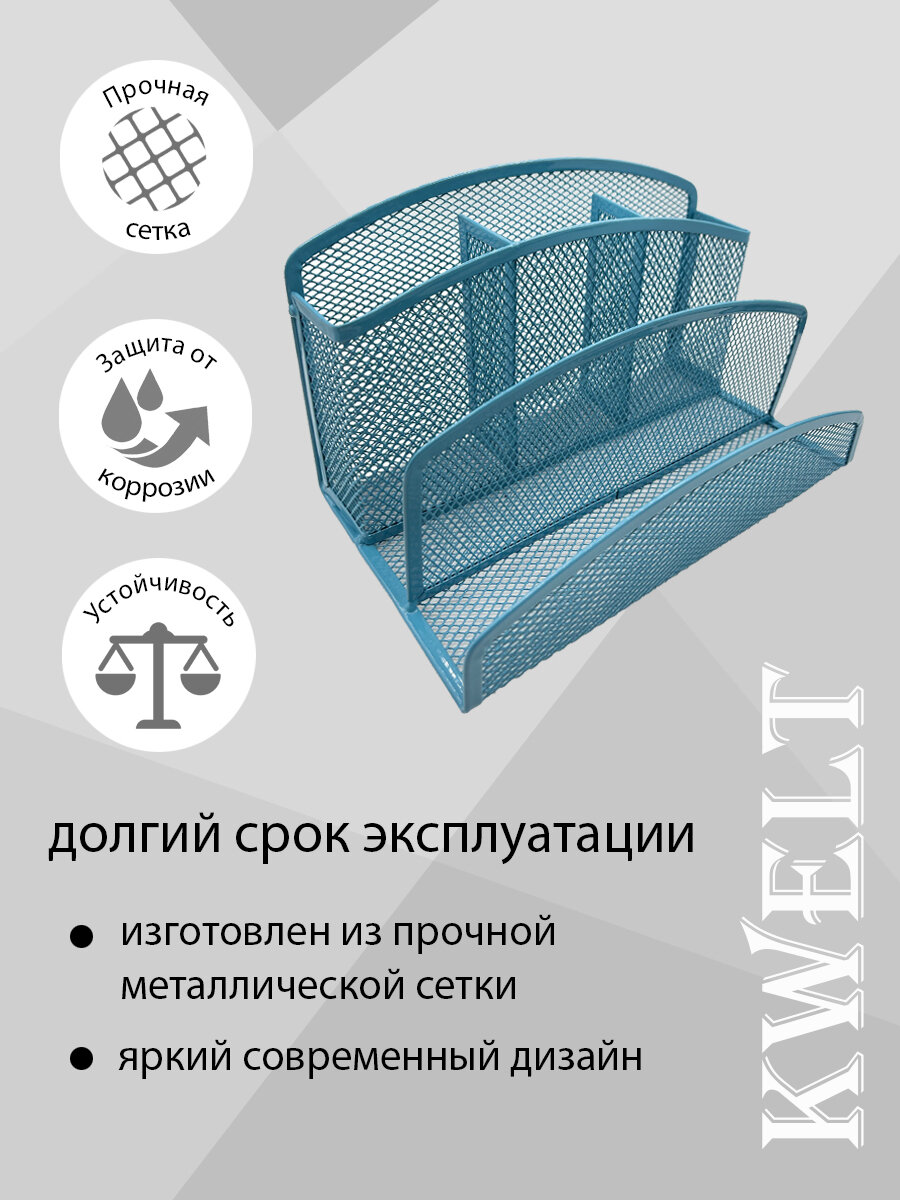 Купить Подставка " KWELT " 5 отделений, 22*12*14см, металлическая, сетчатая, голубая, картонная упаковка