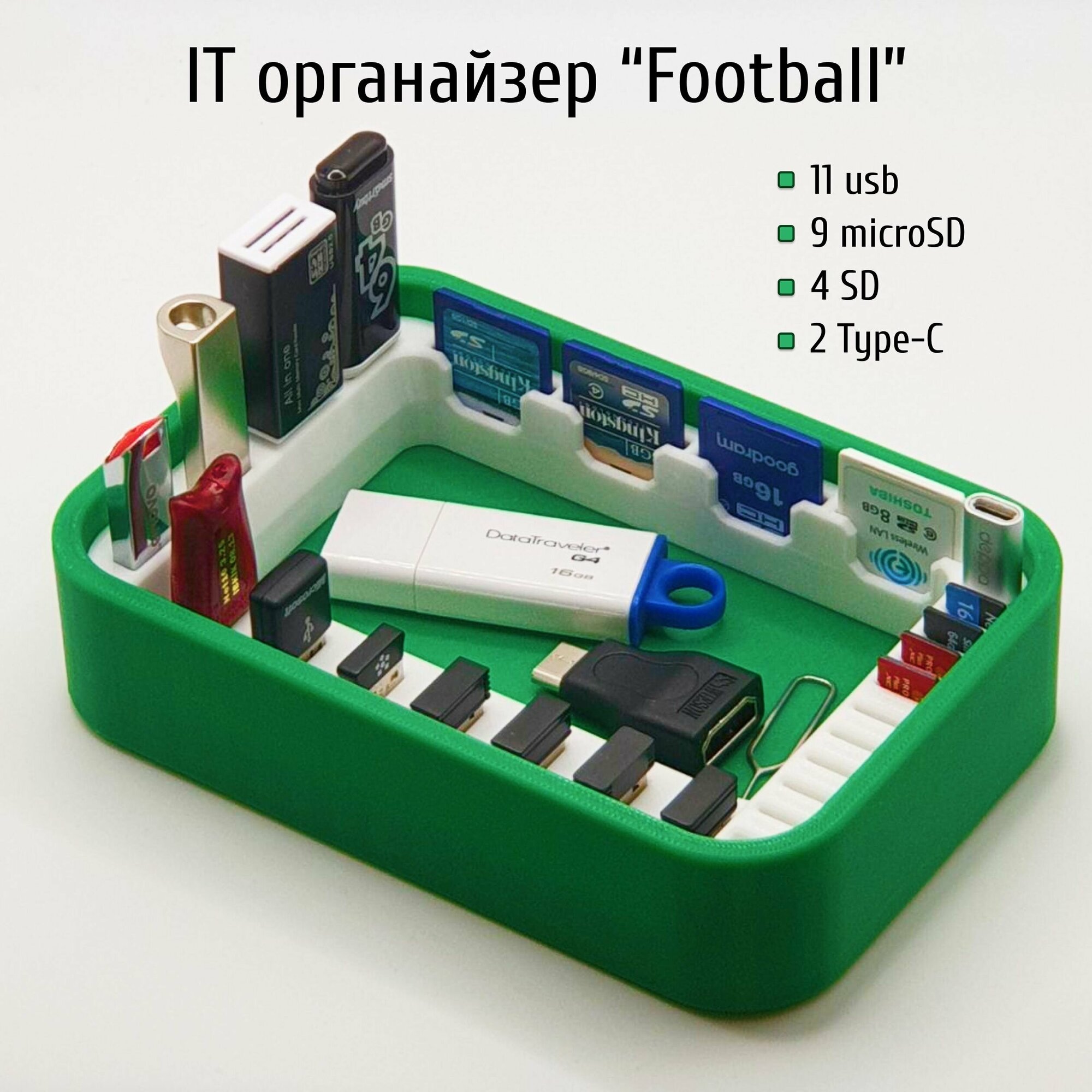 IT органайзер FormFun Factory "Football", для USB-флеш, SD- и MicroSD-карт, нескользящие ножки, зелёный интересное: