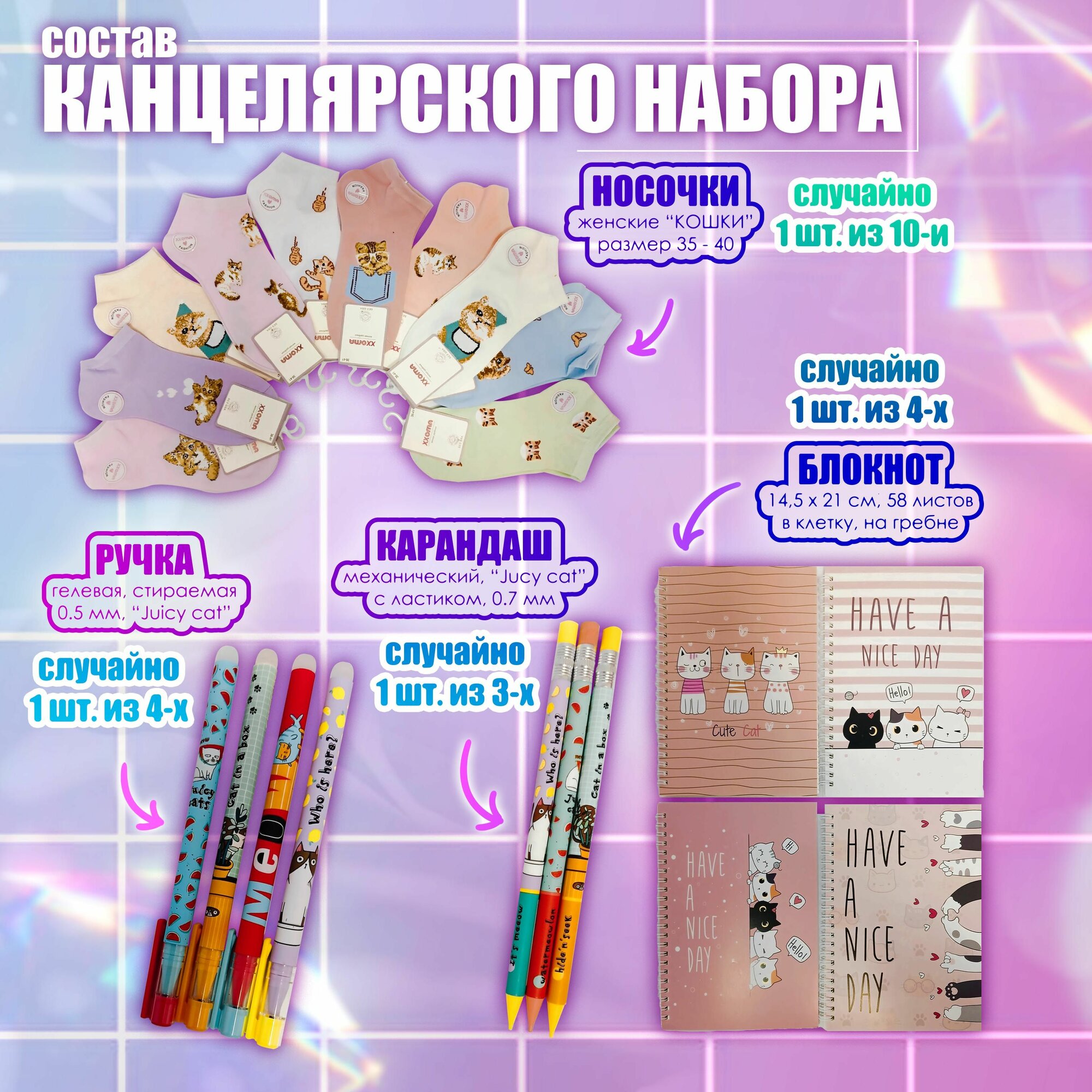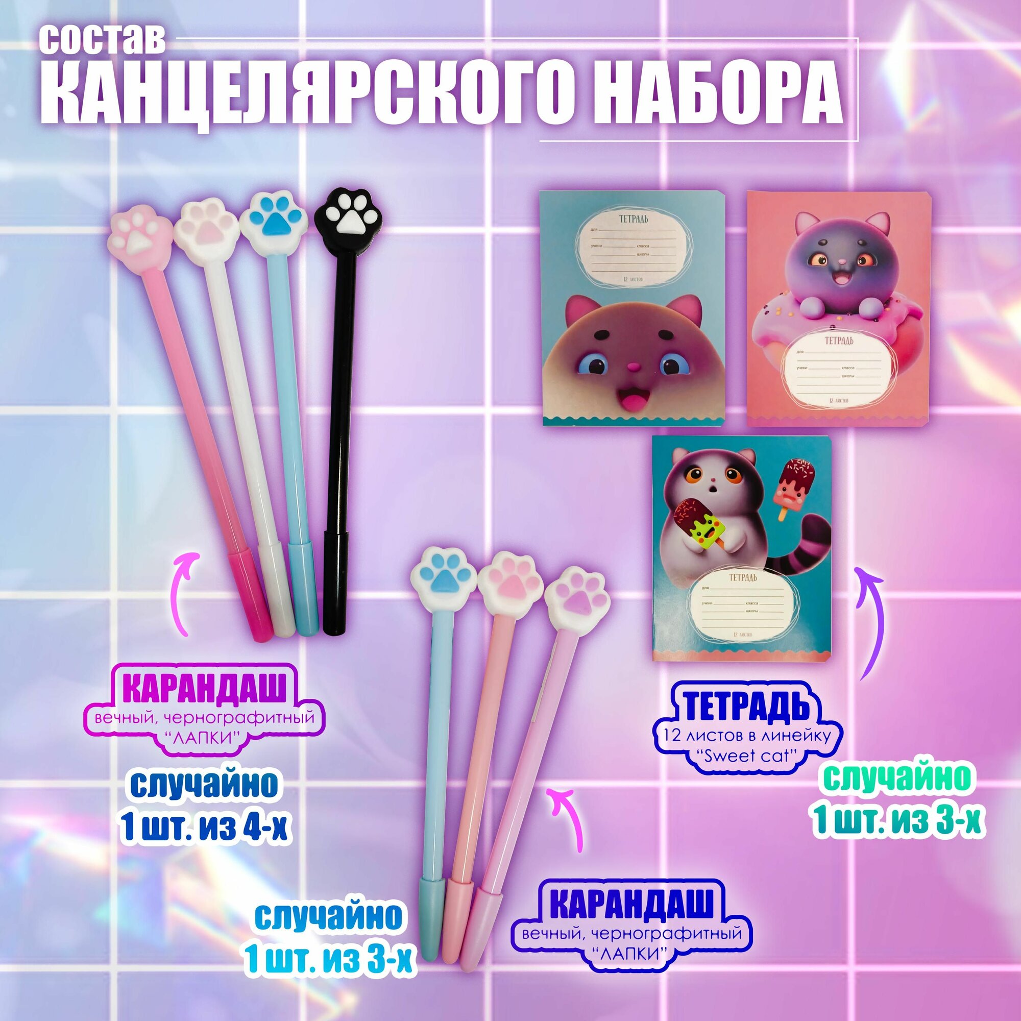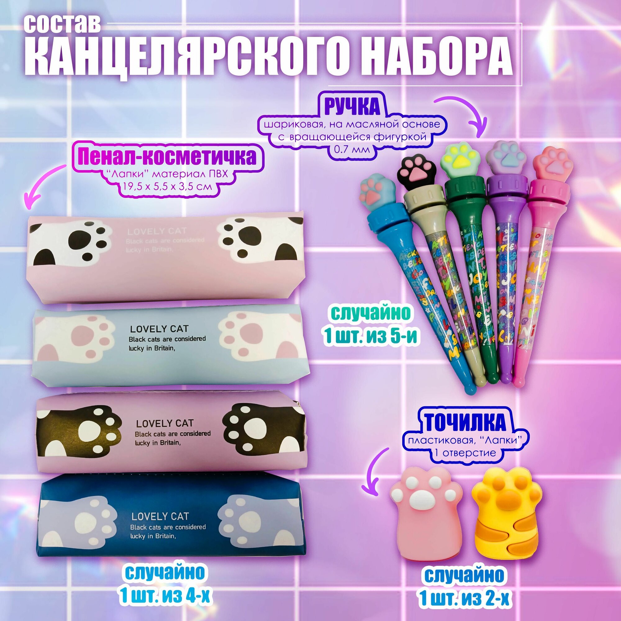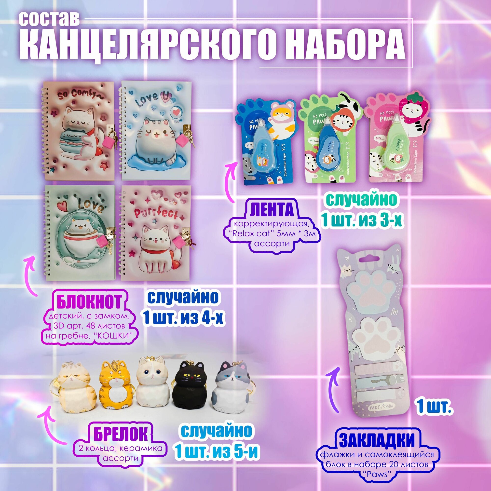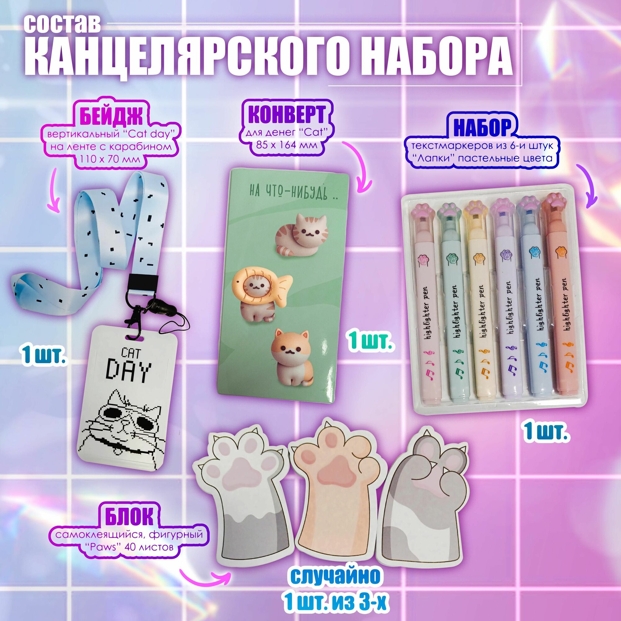 Купить Набор канцелярии "Лапочки для лапочки!" 33+1 предметов, бокс письменных принадлежностей в подарочной коробке, канцелярский набор для школы (кошки)