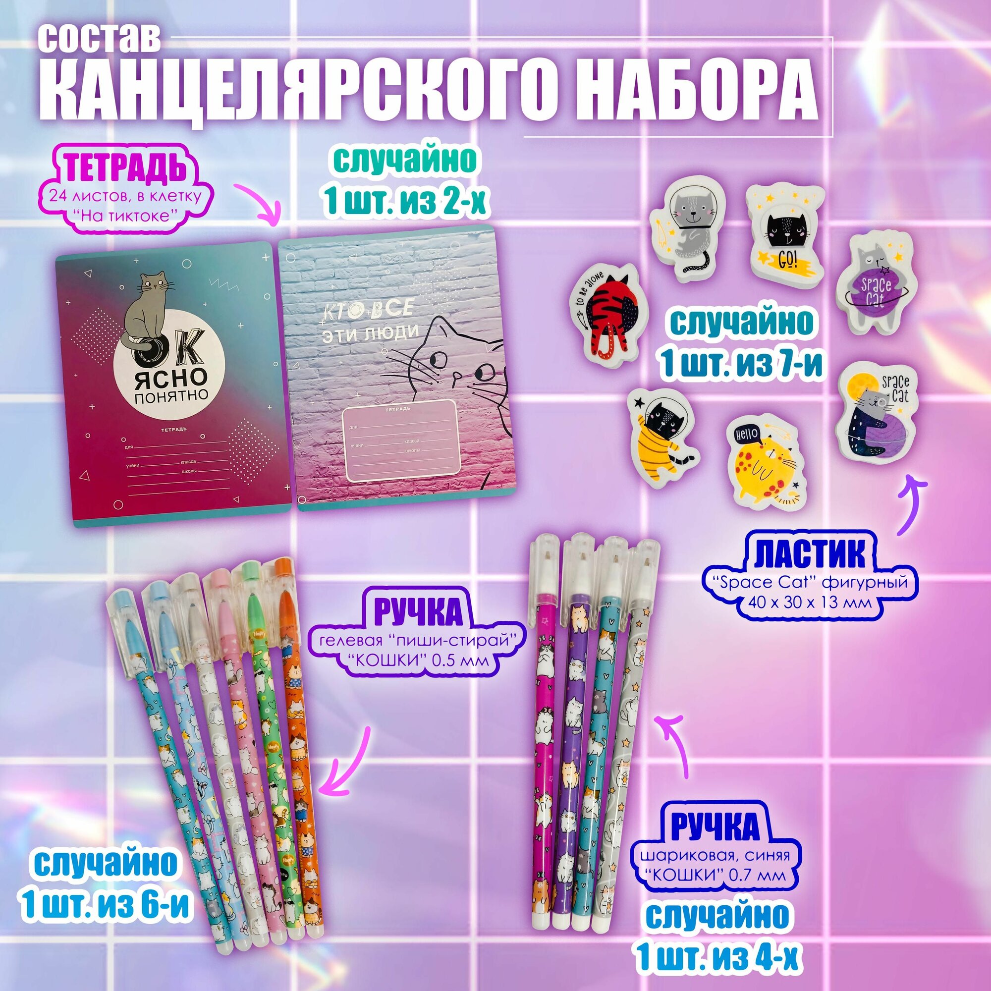 Набор канцелярии "Космическая надобность!" 25+1 предметов, бокс письменных принадлежностей в подарочной коробке, канцелярский набор для школы А4 (кошки)