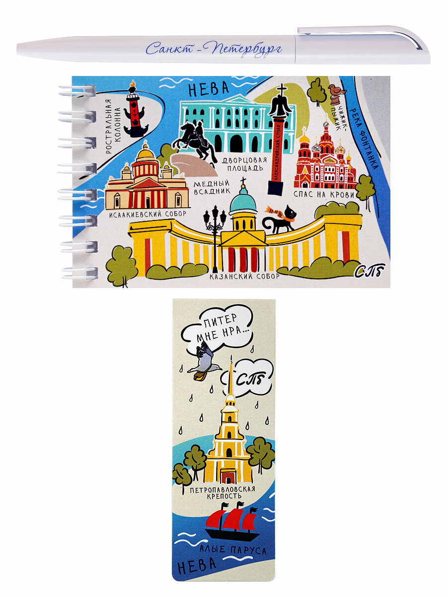 Набор ручка, блокнот, закладка для книг, сувениры "Люблю Питер"