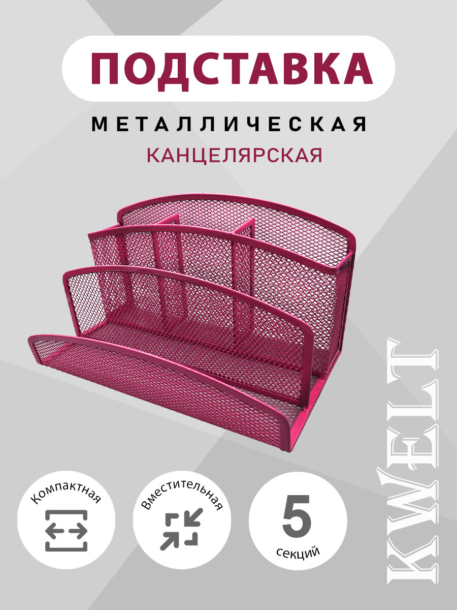 Подставка " KWELT " 5 отделений, 22*12*14см, металлическая, сетчатая, розовая, картонная упаковка интересное: