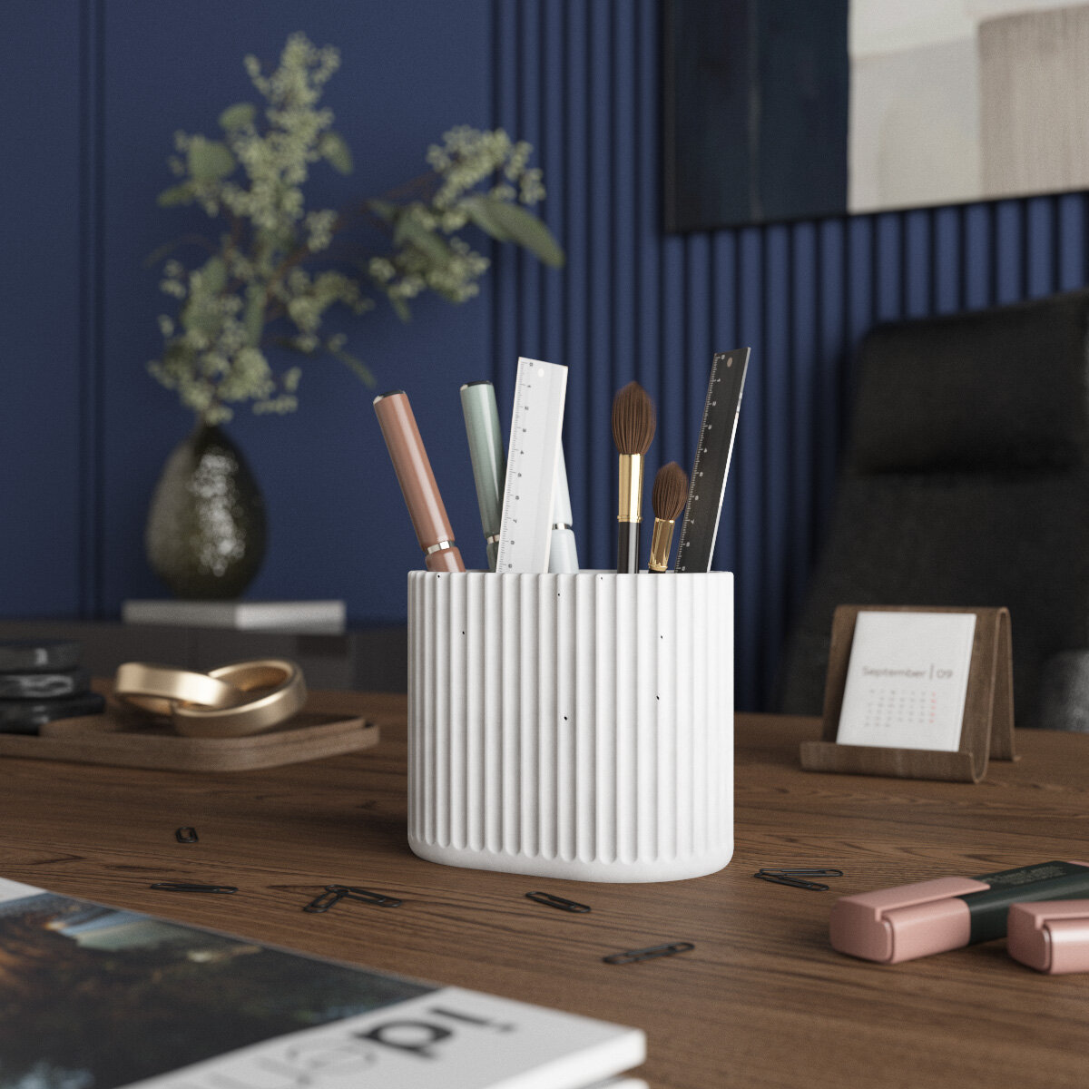 Канцелярский стакан Chloe Duo, органайзер для канцелярии, 13х10х8,5 см, бетон, белый матовый