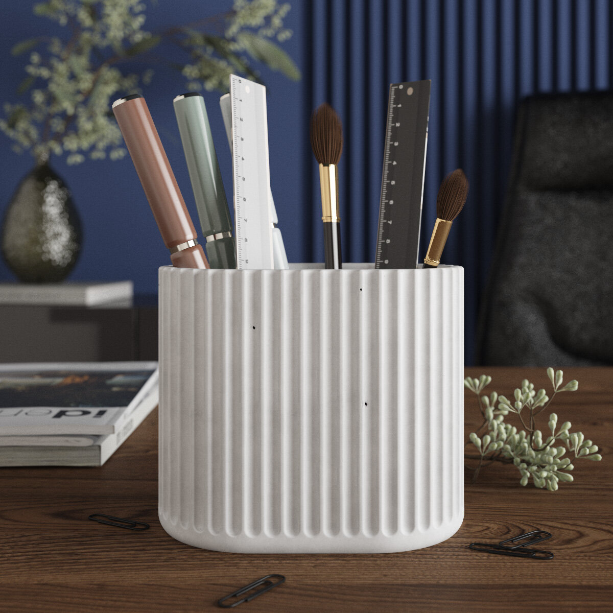 Канцелярский стакан Chloe Duo, органайзер для канцелярии, 13х10х8,5 см, бетон, кремовый глянцевый