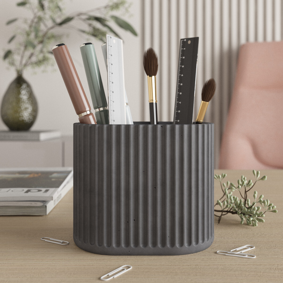 Канцелярский стакан Chloe Duo, органайзер для канцелярии, 13х10х8,5 см, бетон, серый матовый