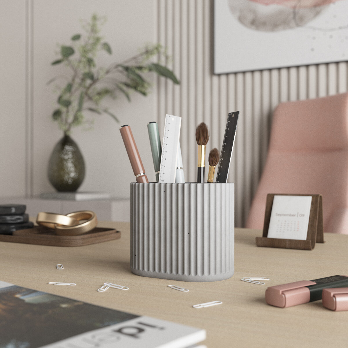 Канцелярский стакан Chloe Duo, органайзер для канцелярии, 13х10х8,5 см, бетон, розовый матовый