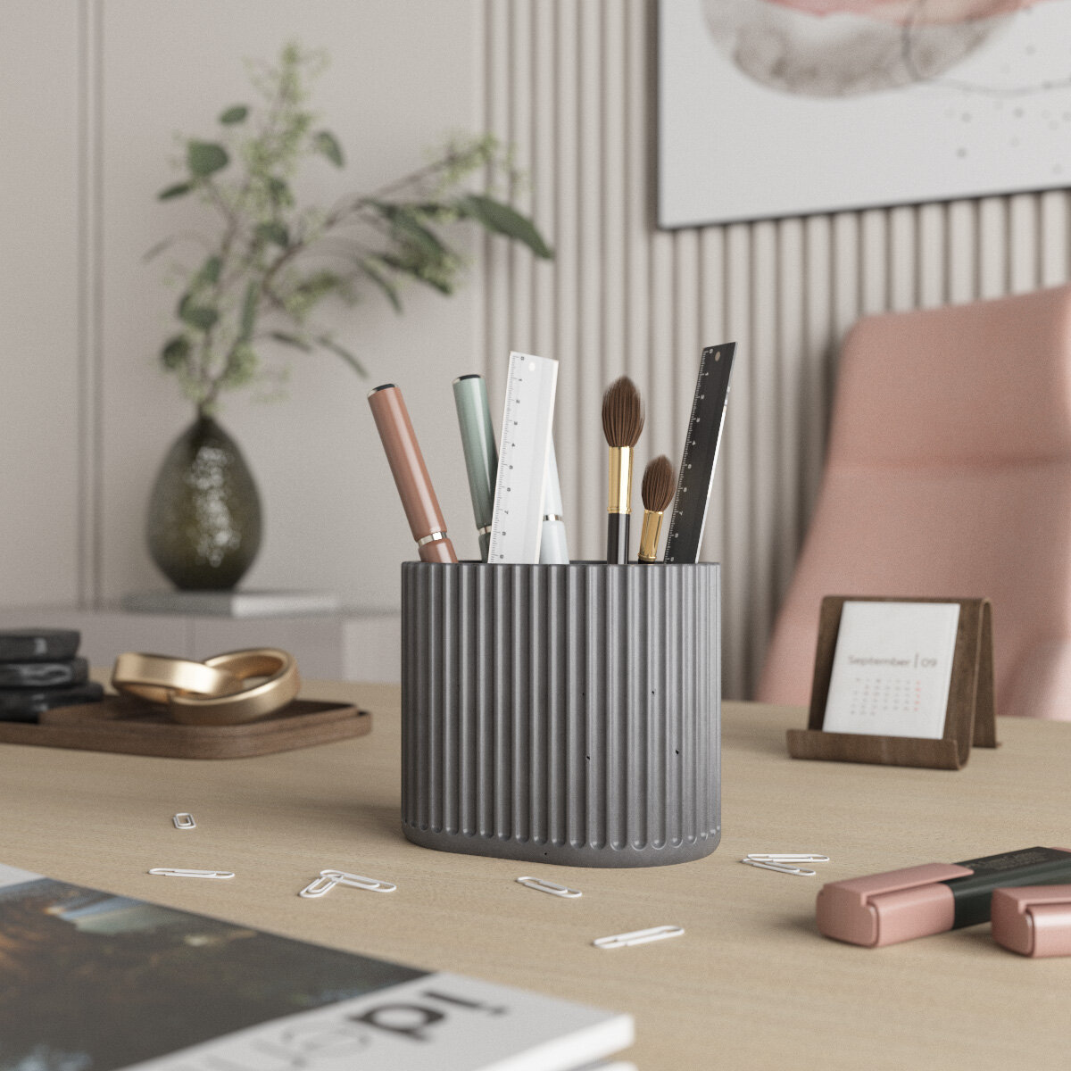 Канцелярский стакан Chloe Duo, органайзер для канцелярии, 13х10х8,5 см, бетон, розовый матовый