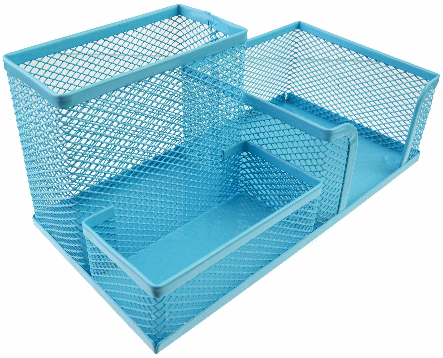 Купить Подставка для канцелярских принадлежностей, 3 ячейки, металл, голубой цвет