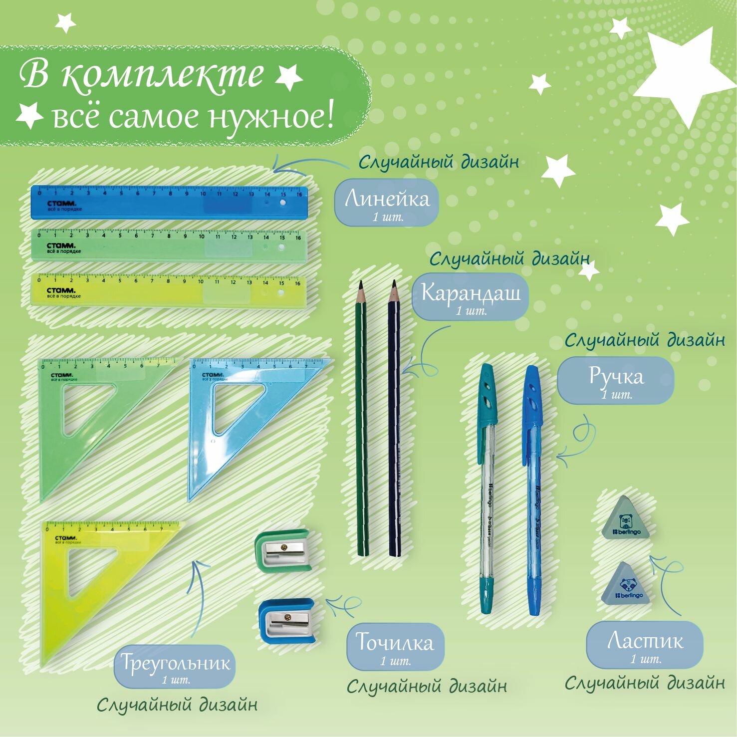 | В комплекте | альбом для рисования 40л А4 - 1шт; карандаши цветные 12цв. - 1шт; карандаш чернографитный - 1шт; клей - карандаш - 1шт; краски акварельные 10цв. - 1шт; ластик - 1шт; линейка пластик 16см - 1шт; обложка прозрачная - 10шт; папка с ручками А4 - 1шт; пластилин 8цв - 1шт; ручка шариковая синяя - 1шт; тетрадь 12л. в клетку - 2шт; точилка пластик - 1шт; треугольник - 1шт; цветная бумага - 10л, 10цв. - 1шт; цветной картон 8л, 8цв. - 1шт. |