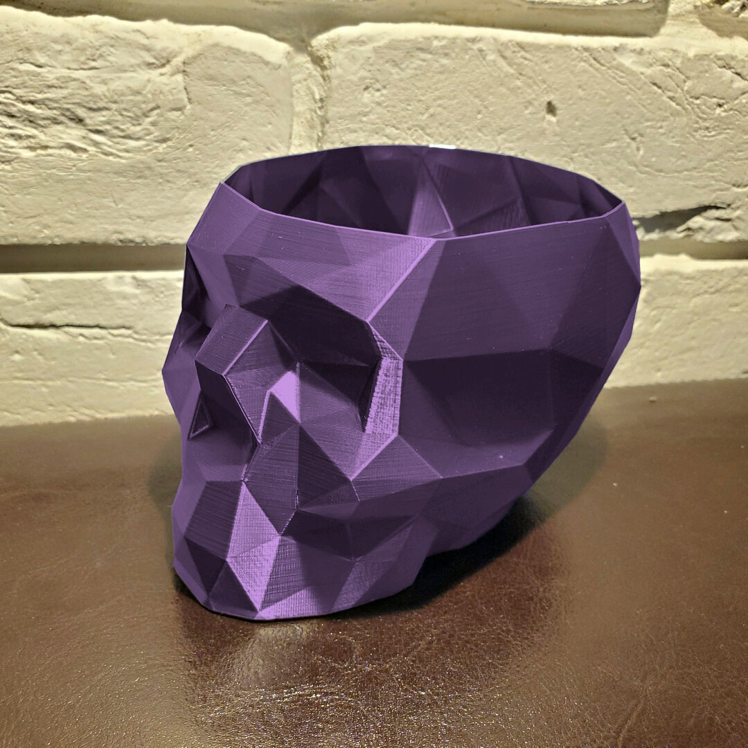Купить Череп-Ваза для конфет/карандашей, полигональная, фиолетовая