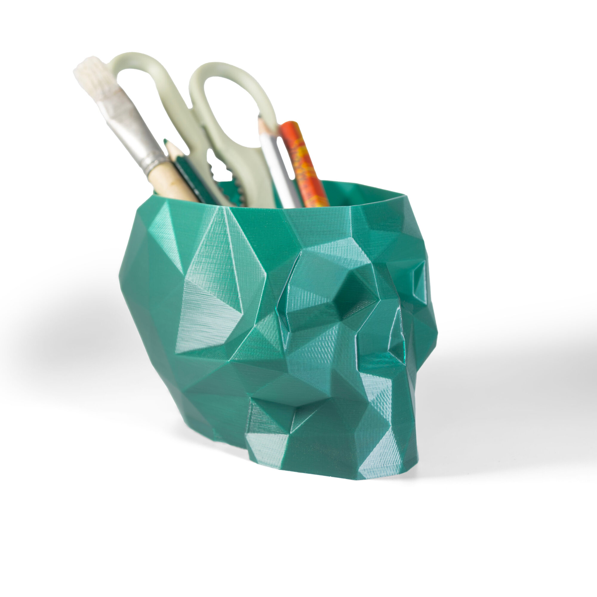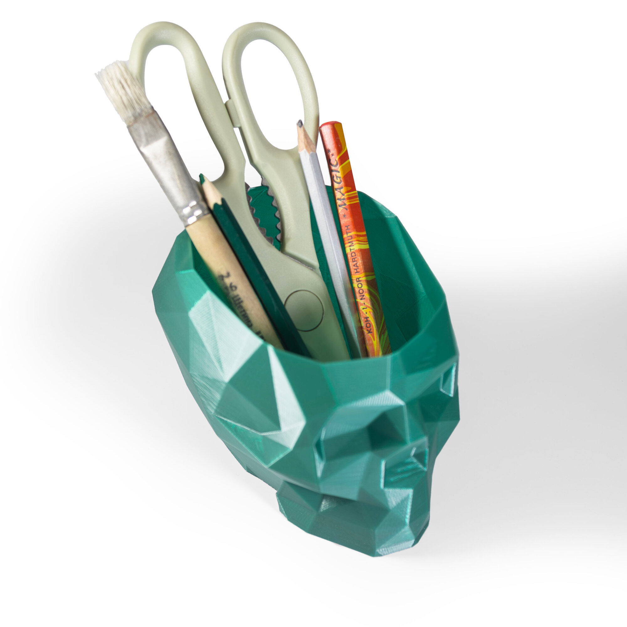 Купить Череп-Ваза для конфет/карандашей, полигональная, зелёная