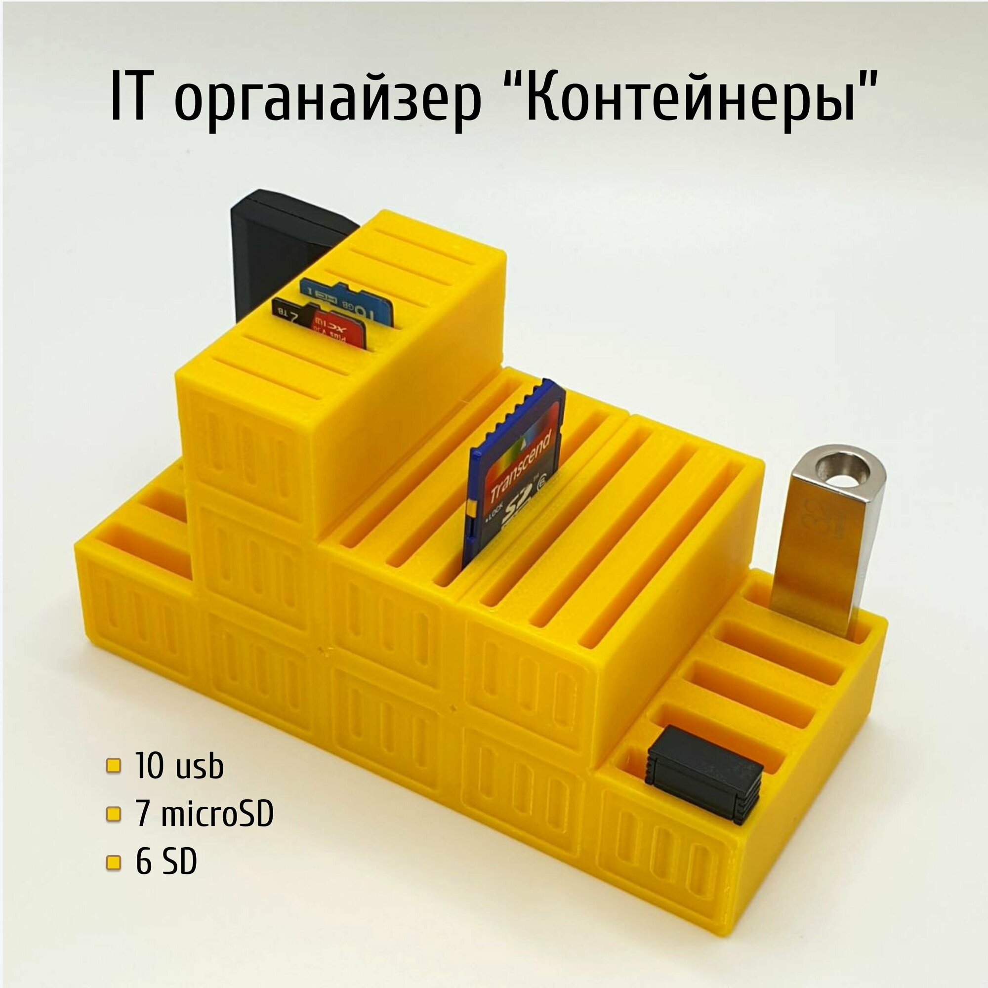 Купить IT органайзер FormFun Factory "Контейнеры", для USB/SD/MicroSD, желтый, пластик