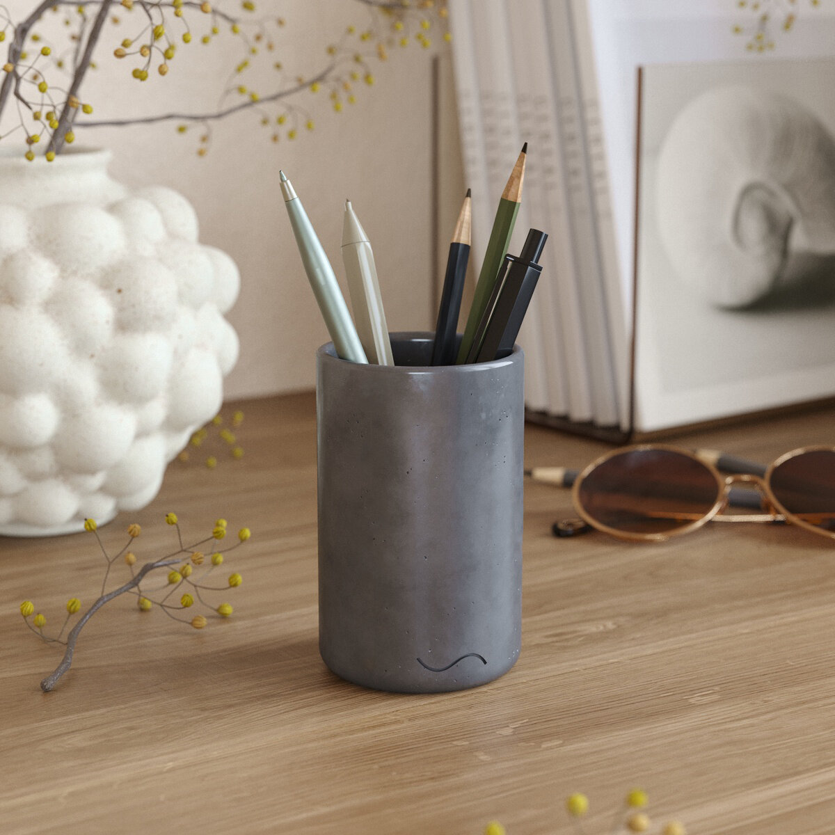 Стакан канцелярский, органайзер для ручек и карандашей Astrid Slim, 7x11 см, серый матовый