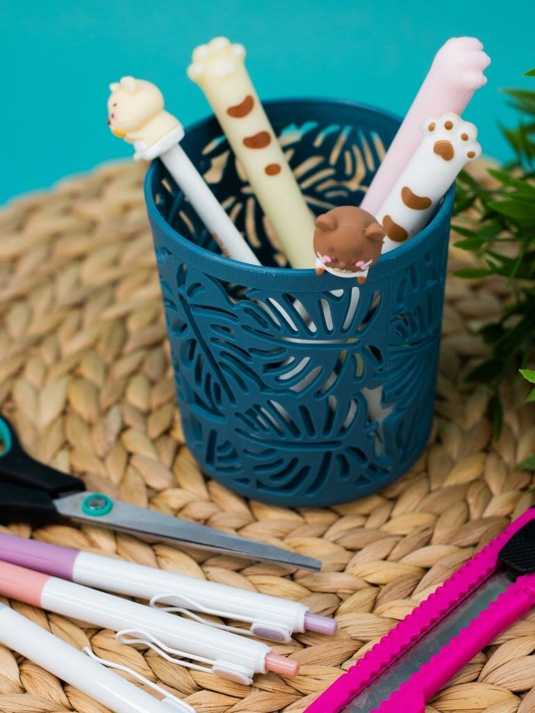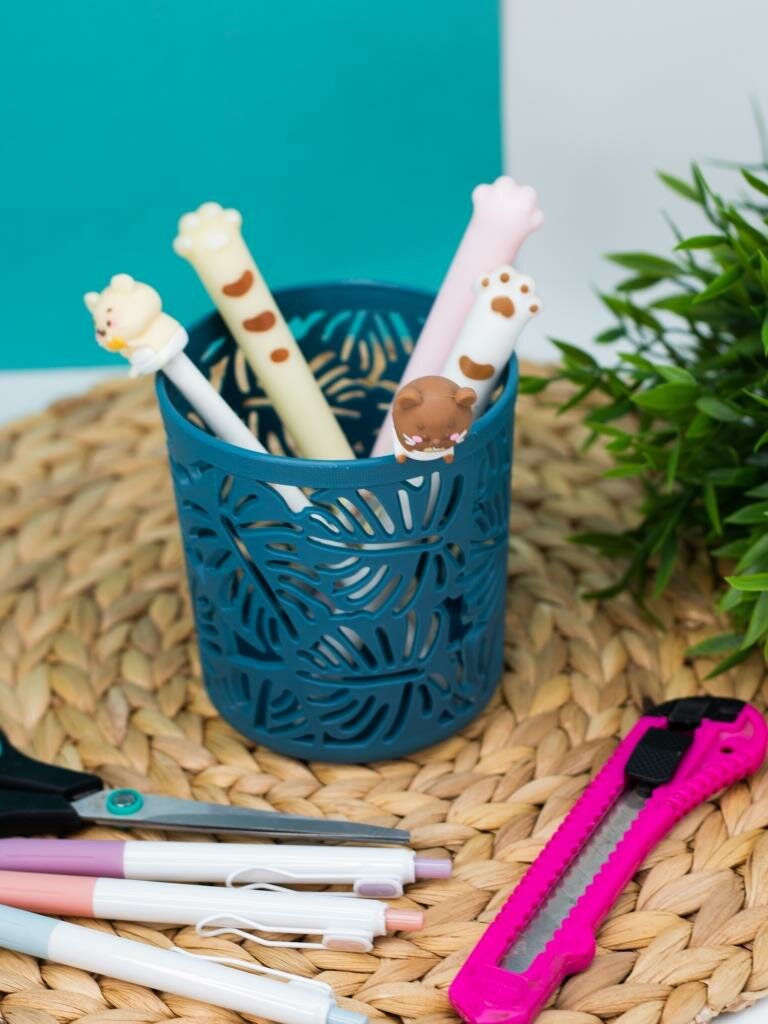 Подставка для канцелярии / органайзер настольный "Leaves", blue, 11 см интересное: