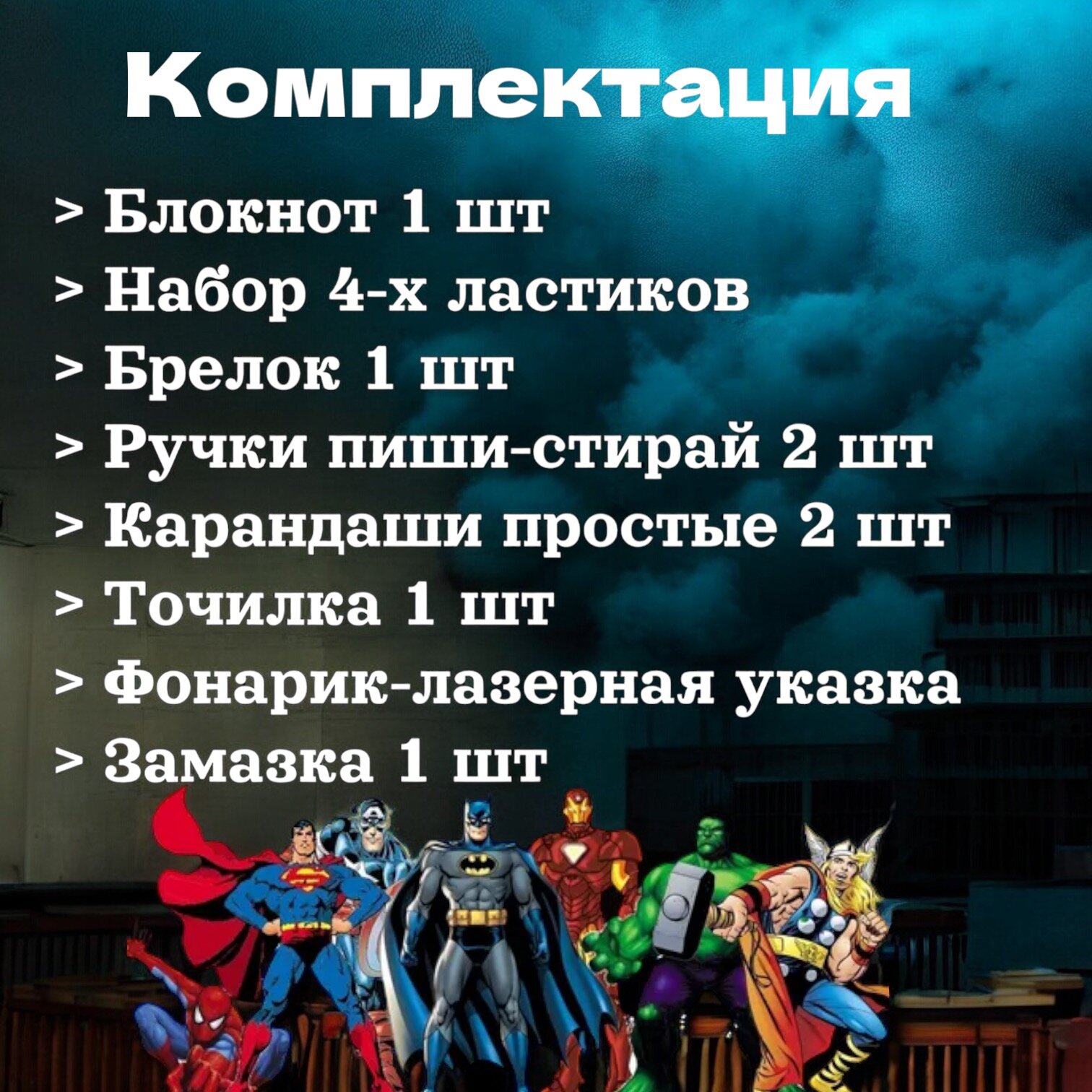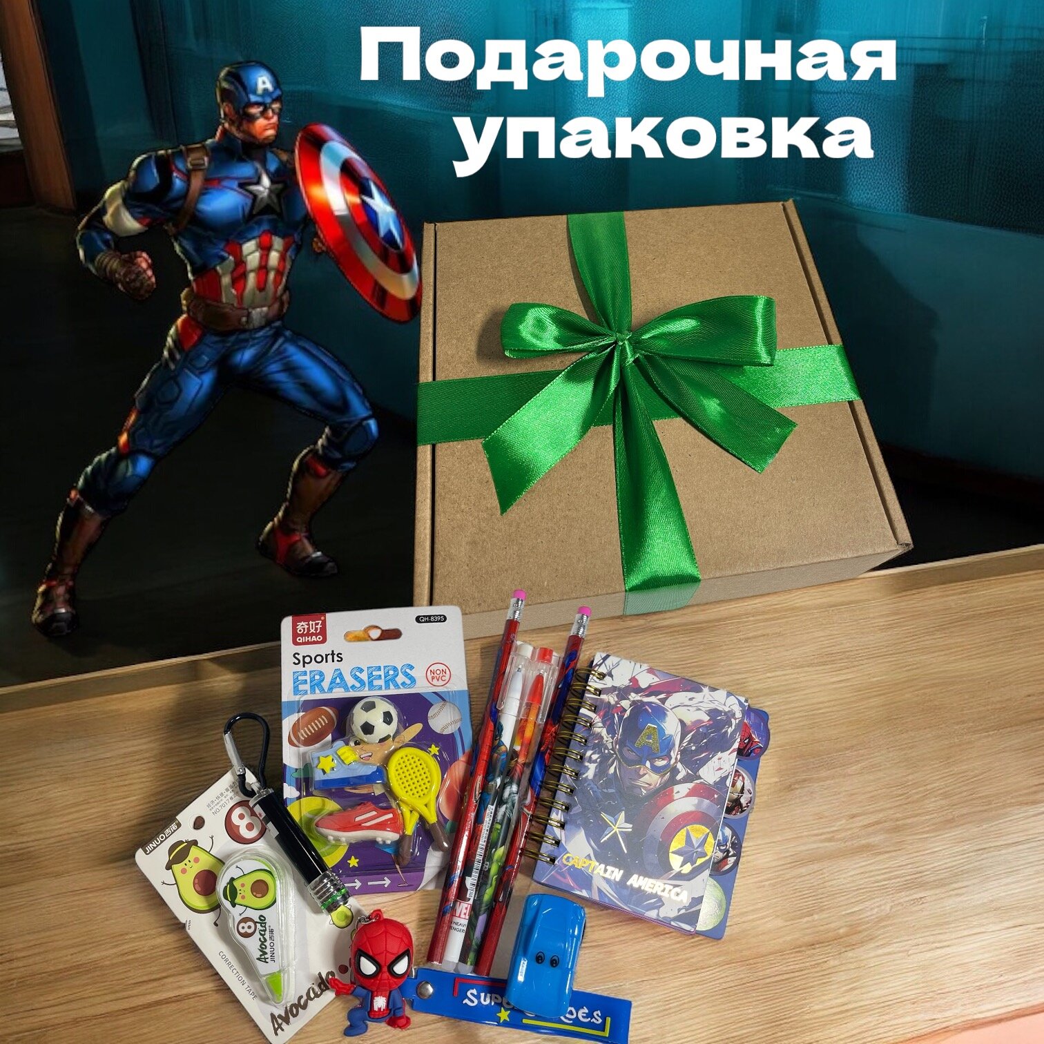 Набор канцелярии подарочный для мальчика в подарочной коробке, Марвел и Супергерои