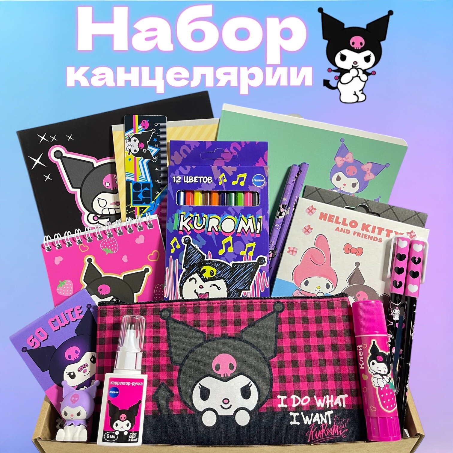 Набор канцелярии для девочки DOMIOo "Куроми", подарочный набор, Kuromi бокс в подарочной коробке