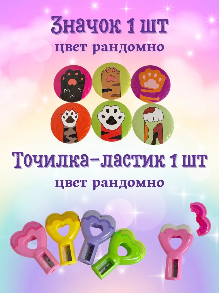 | В комплекте | Блокнот-1шт, набор магнитных закладок, набор ластиков, точилка лапка, ручки пиши стирай 2шт, карандаш простой 2шт |