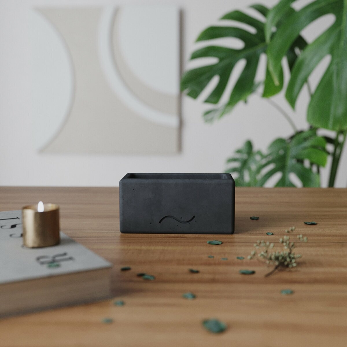 Канцелярская подставка, визитница Emily S, 11x5 см, бетон, графитовая глянцевая