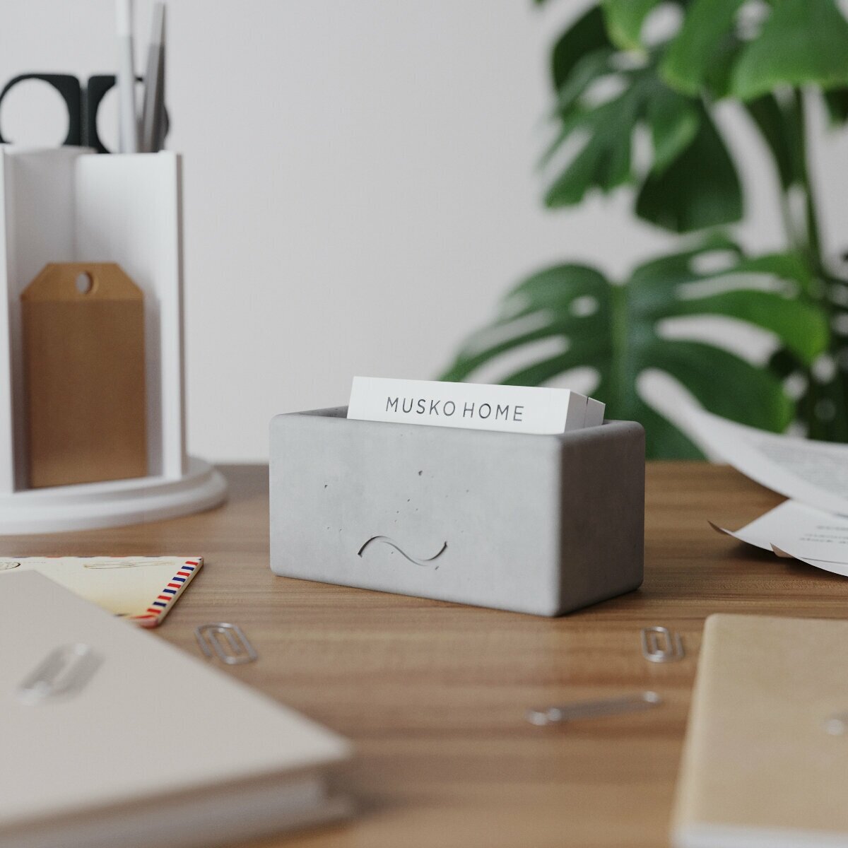 Канцелярская подставка, визитница Emily S, 11x5 см, бетон, кремовая матовая