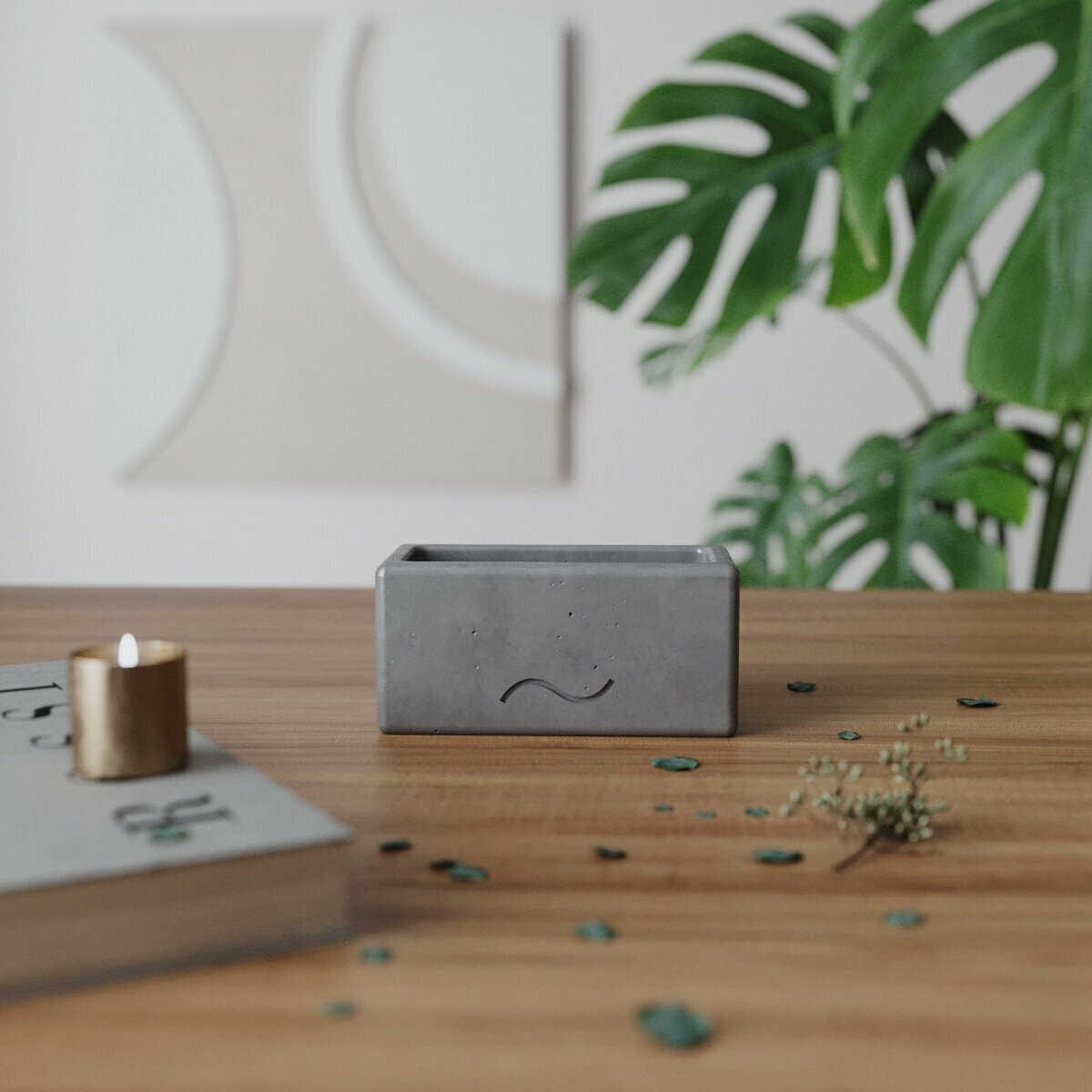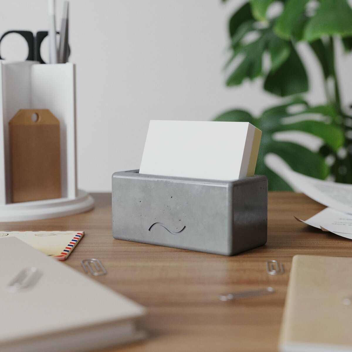 Канцелярская подставка, визитница Emily S, 11x5 см, бетон, серая матовая