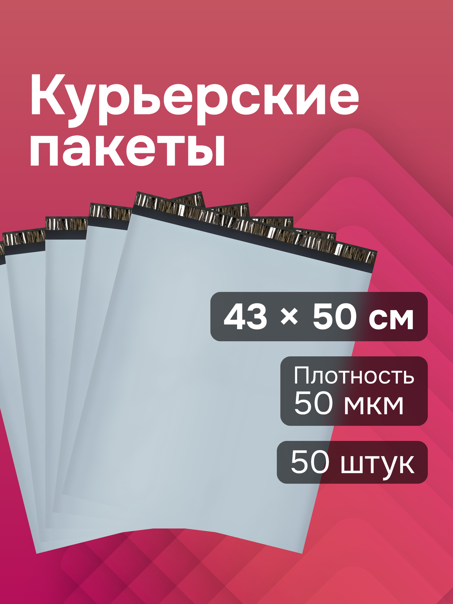 Купить Курьерские пакеты, полиэтилен, 43х50 см, 50 штук, защита от вскрытия, белые