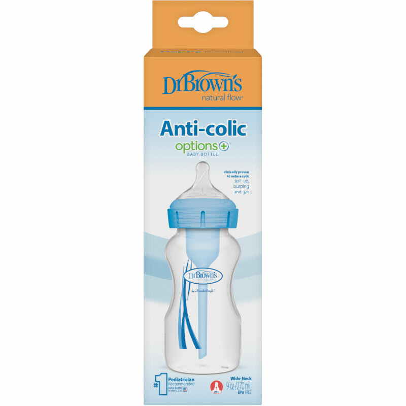 Купить Бутылочка антиколик Dr. Brown's Options+ с широким горлышком, Синяя, 270 мл