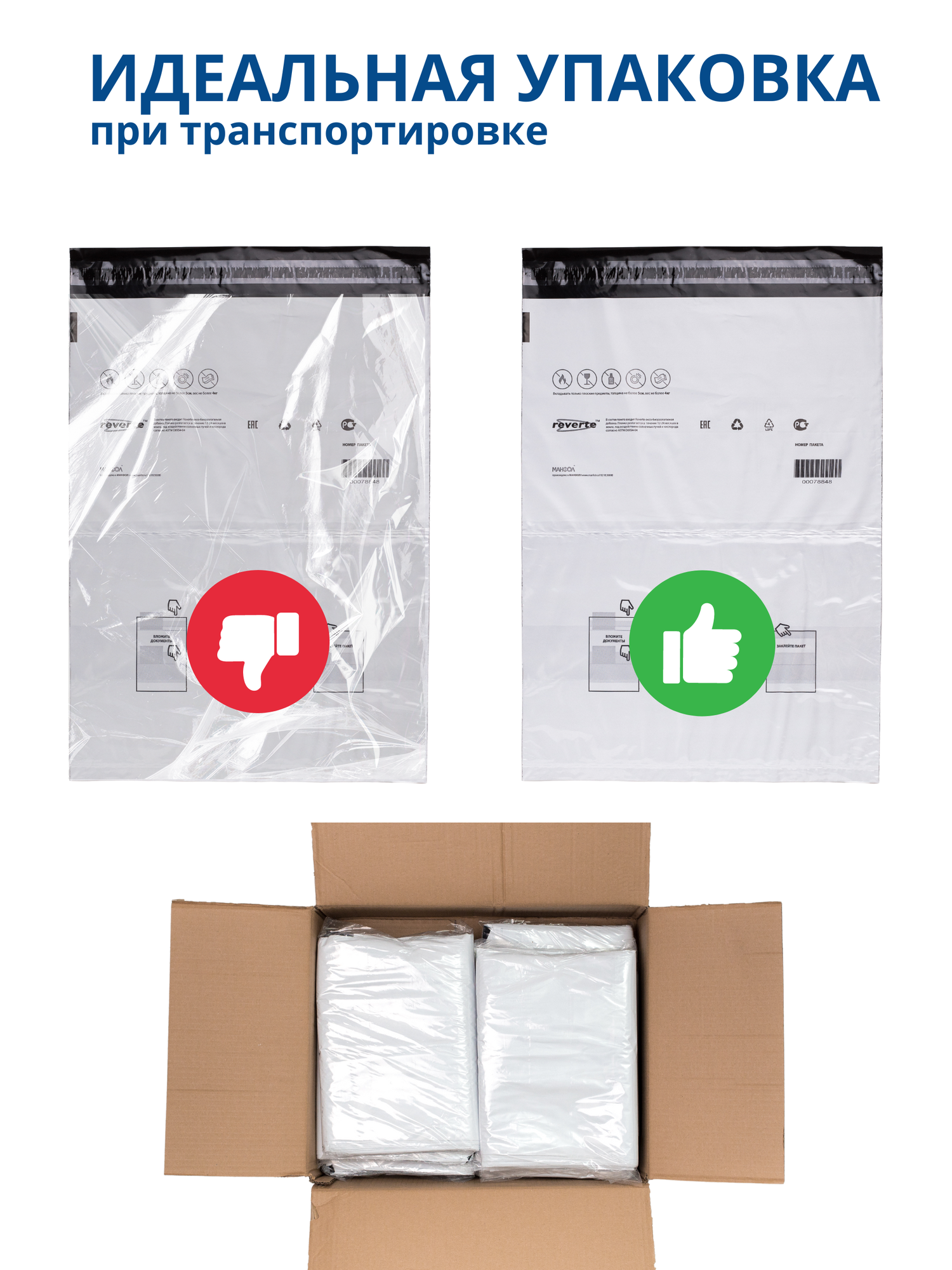 Пакет почтовый Почта России 600х695 мм, 50 штук