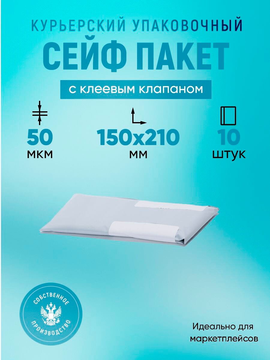 СохранитьКурьерский упаковочный сейф пакет 150х210 мм, с клеевым клапаном, 50 мкм, 10 штук белый интересное: