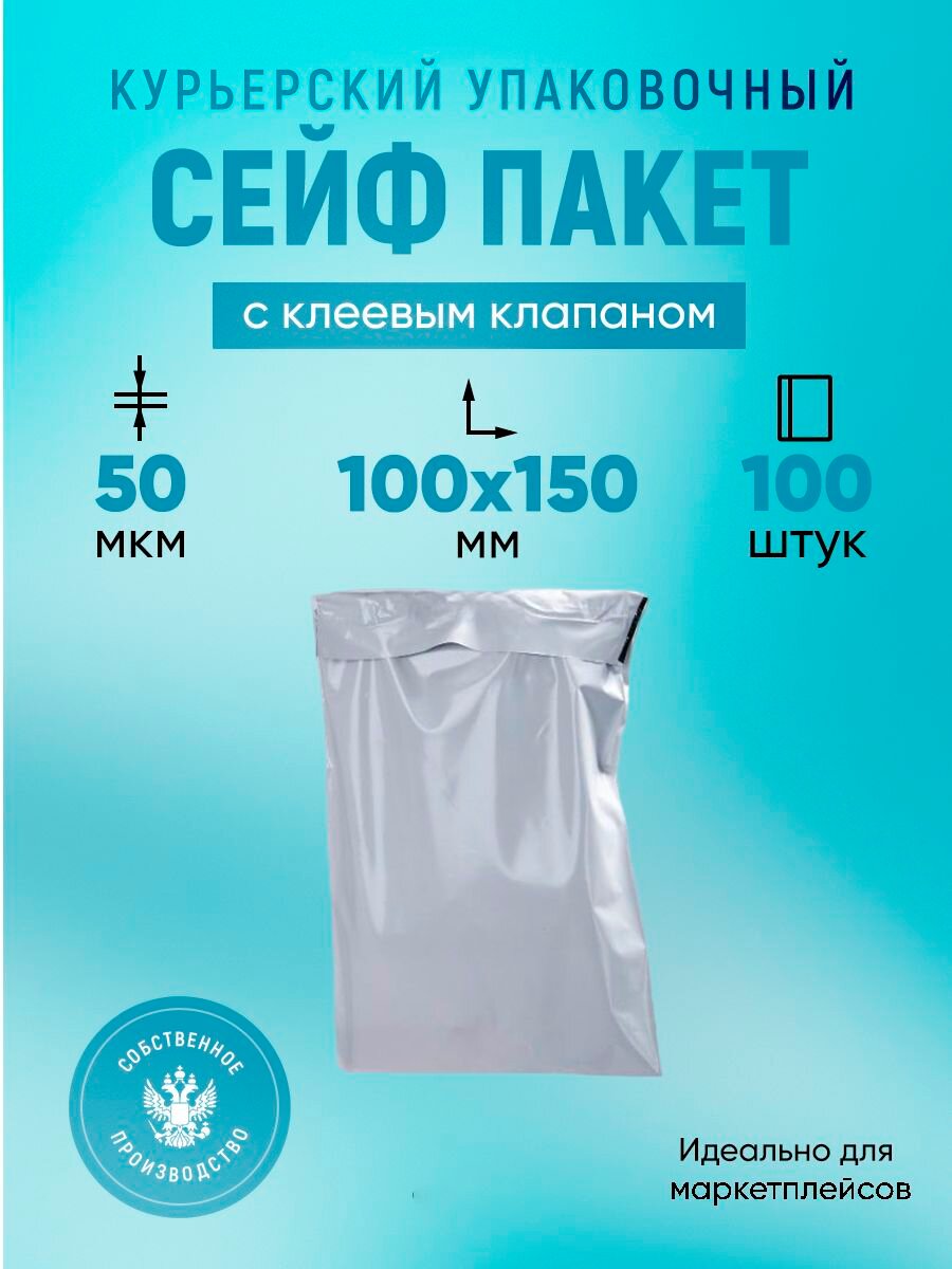 СохранитьКурьерский упаковочный сейф пакет 100х150 мм, с клеевым клапаном, 50 мкм, 100 штук белый интересное: