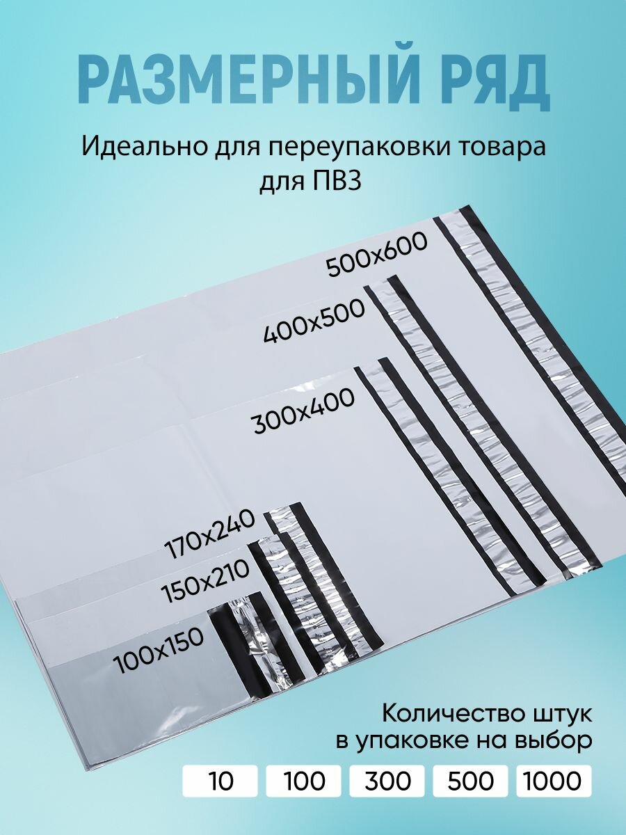 Курьерский упаковочный сейф пакет 150х210 мм, с клеевым клапаном, 50 мкм, 10 штук белый