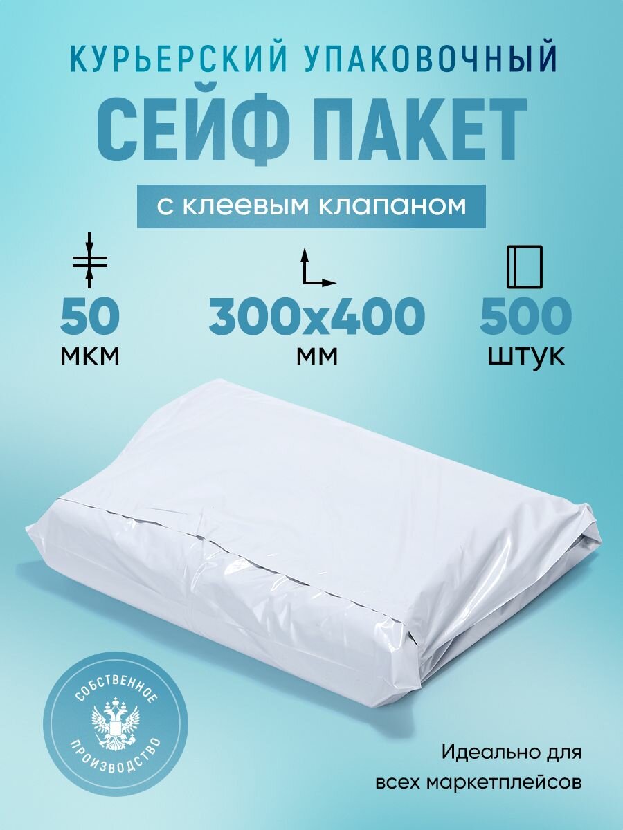 Курьерский упаковочный сейф пакет 300х400 мм, с клеевым клапаном, 50 мкм, 300 штук белый
