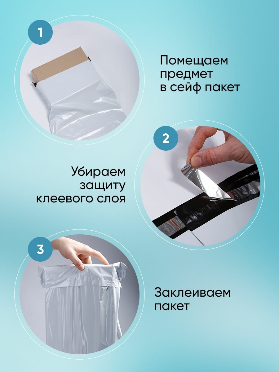 Курьерский упаковочный сейф пакет 150х210 мм, с клеевым клапаном, 50 мкм, 10 штук белый