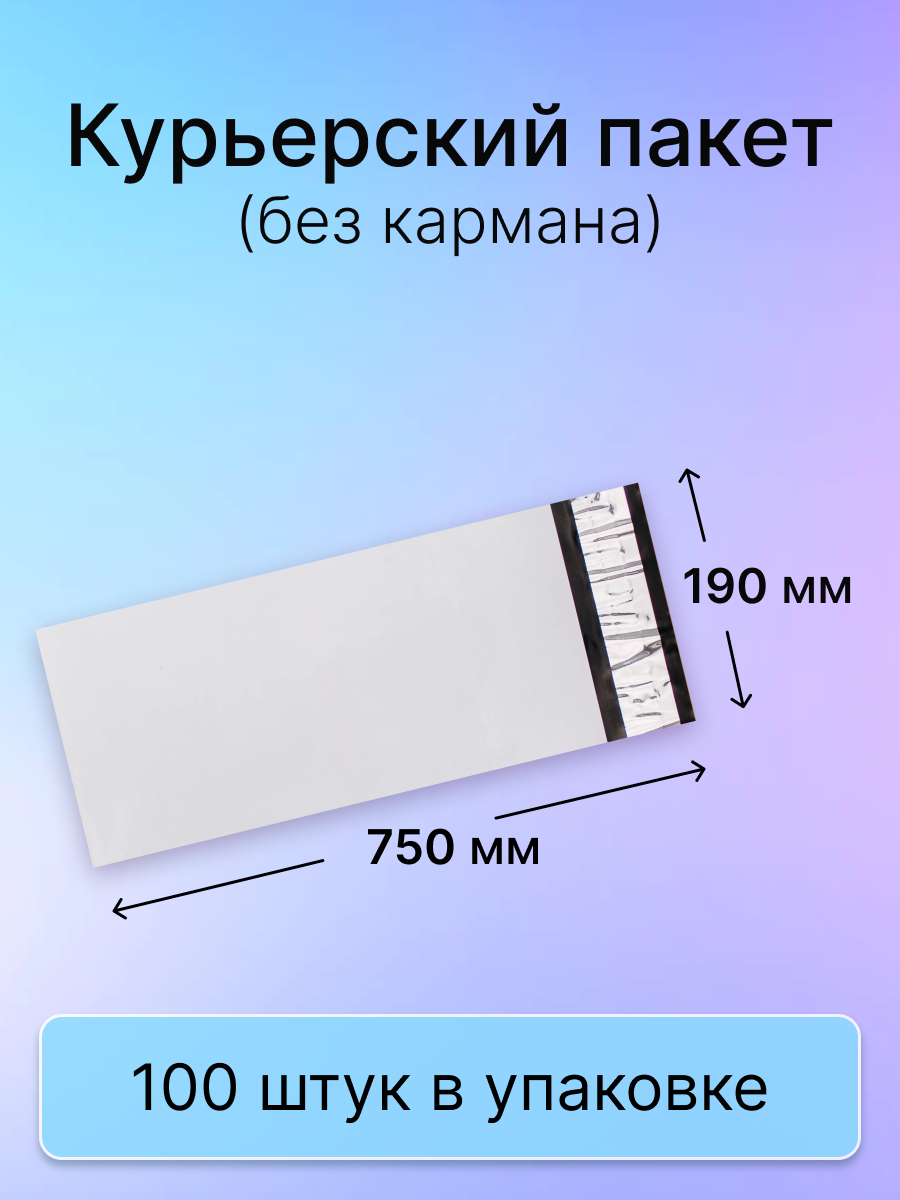Купить Курьерский пакет 190х750 мм. без кармана, клапан 40 мм. (60 мкм.), 100 штук