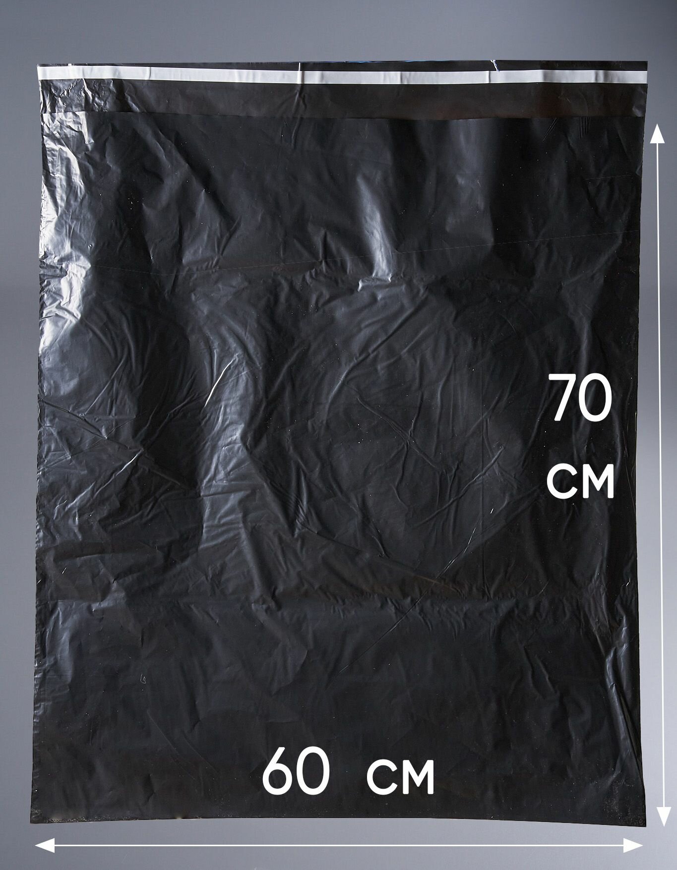 Купить Курьерский пакет, чёрный, 600х700+40, без кармана, 50 мкм, 100 шт.