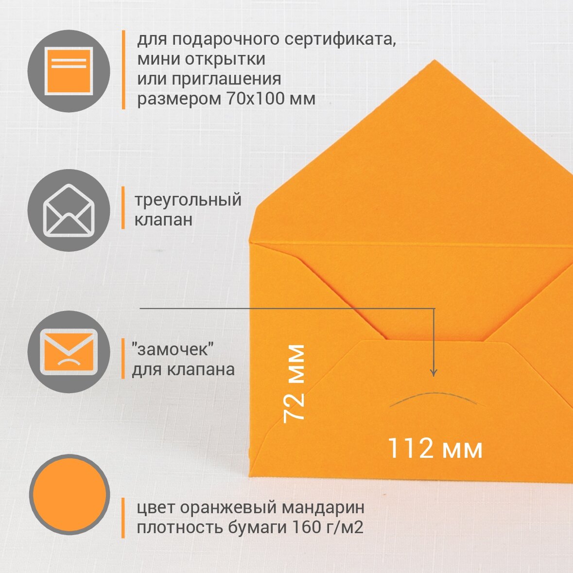 Конверт мини 7х11 см. Оранжевый цвет. Плотность 160 г/м2. 50 штук интересное: