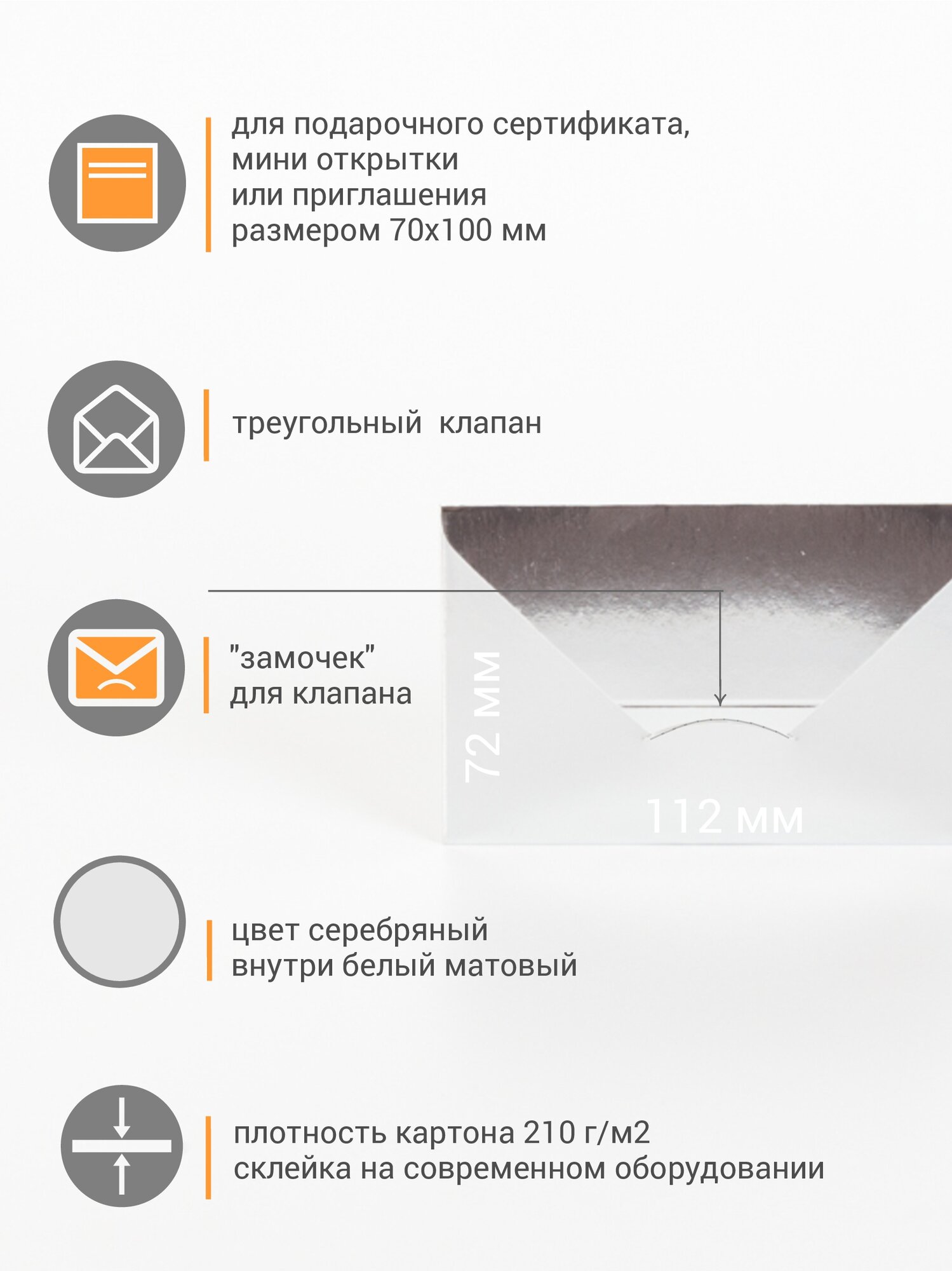 Подарочные картонные конверты мини C7 7х11 см, цвет серебро 10 шт. интересное: