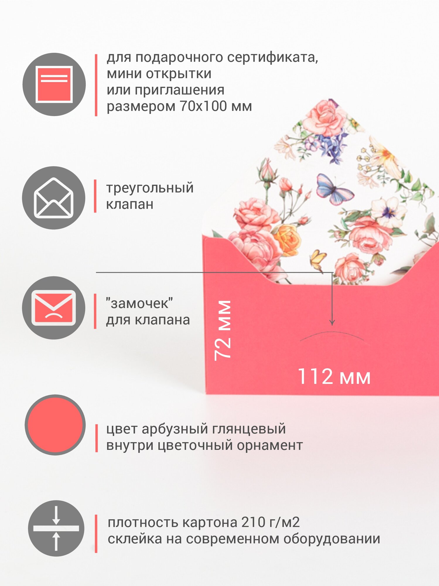 Подарочные картонные конверты мини C7 7х11 см, цвет арбузный 10 шт. интересное: