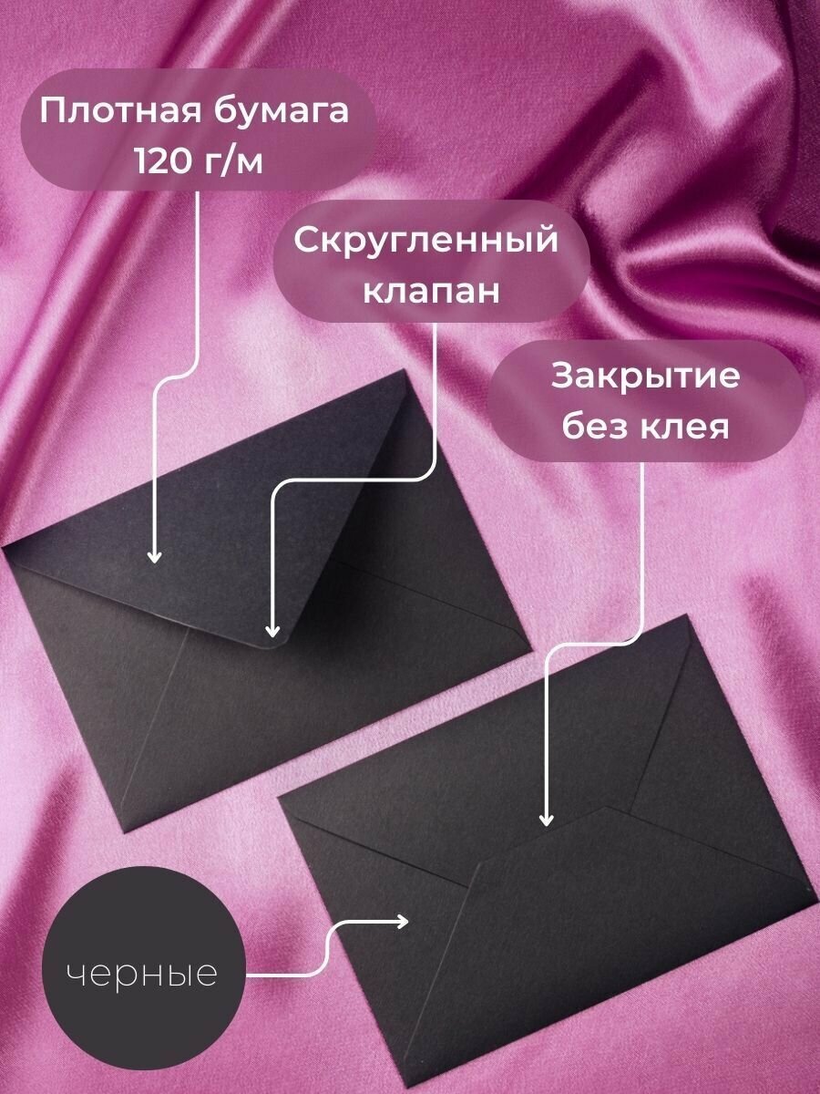 СохранитьЧерные конверты бумажные для пригласительных, С6 114х162мм - набор 50 шт. цветные интересное: