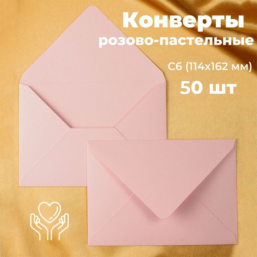 Купить Пастельно-розовые конверты бумажные для пригласительных, С6 114х162мм - набор 50 шт. цветные