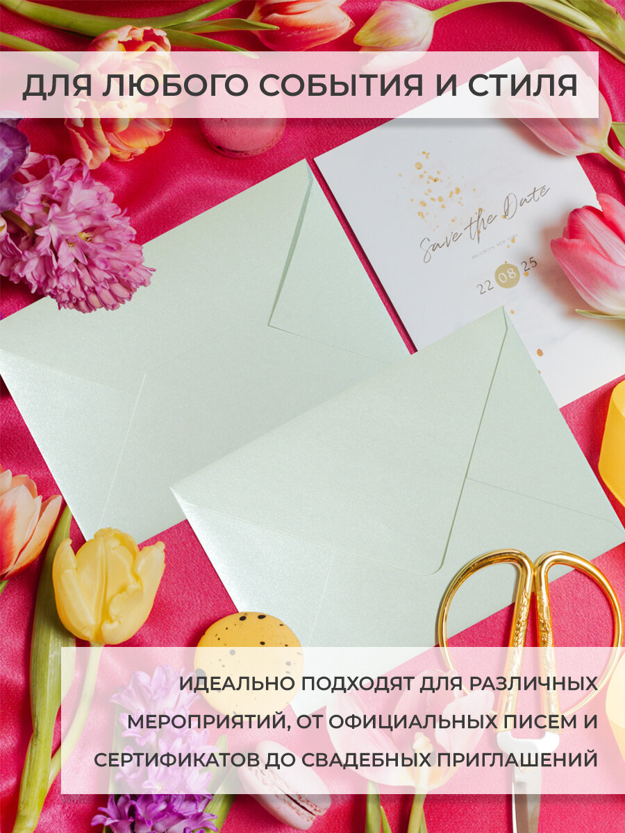 Пудровые конверты бумажные для пригласительных, С6 114х162мм - набор 50 шт. цветные
