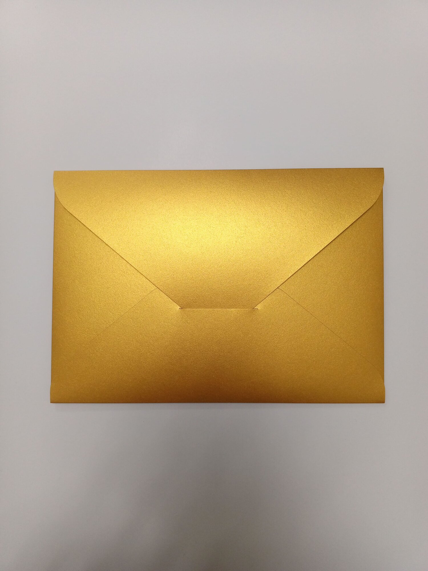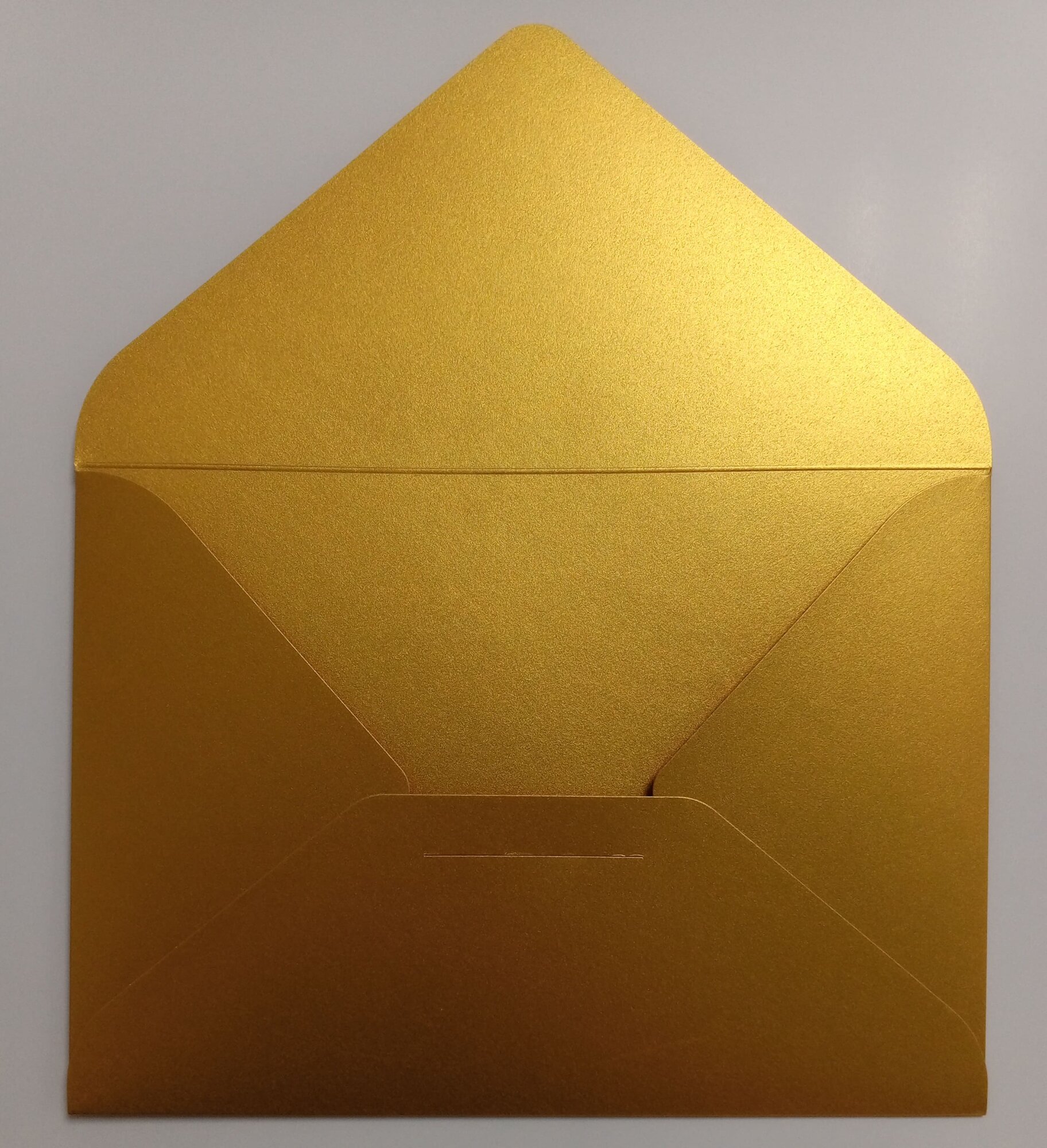Купить Конверт из дизайнерской бумаги MAJESTIC Luxus настоящее золото (плотность 250 гр./м2) формат С5 (229мм х 162мм) с треугольным клапаном, 10 штук в упаковке.