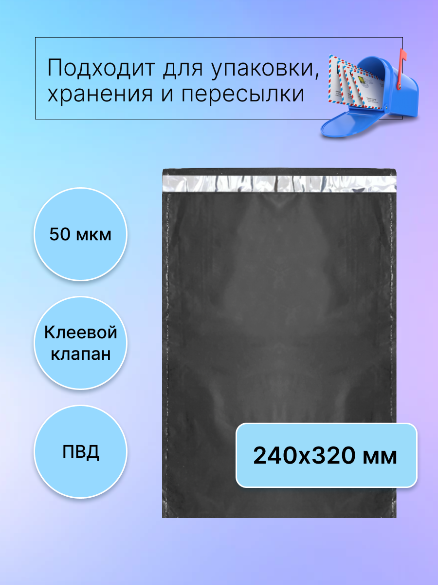 Курьерский пакет 240х320 мм. без кармана, клапан 40 мм. (50 мкм.) черный, 100 штук интересное: