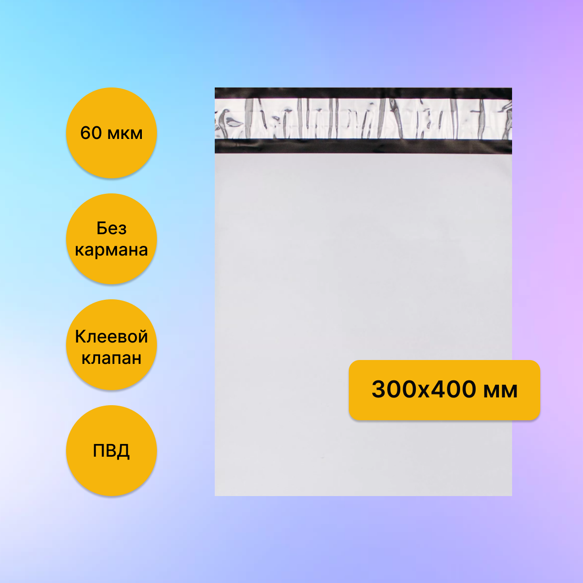 Курьерский пакет 300х400 мм. без кармана, клапан 40 мм. (60 мкм.), 50 штук