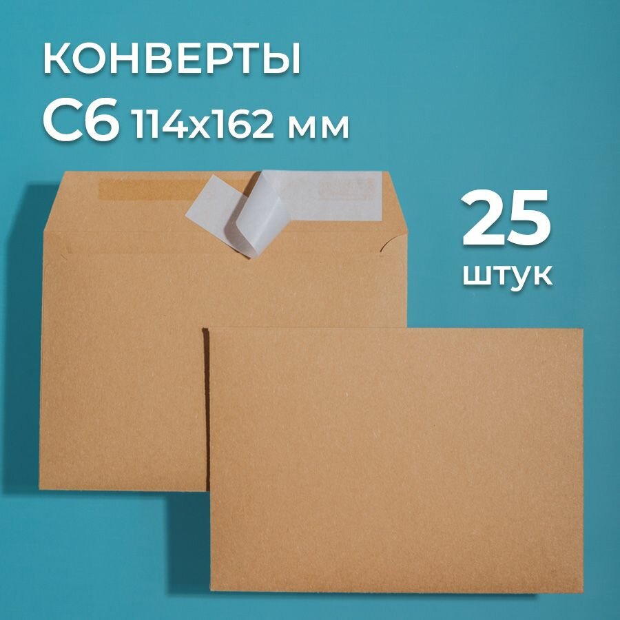 Купить Крафтовые конверты С6 (114х162 мм), набор 25 шт. / бумажные конверты со стрип лентой CardsLike