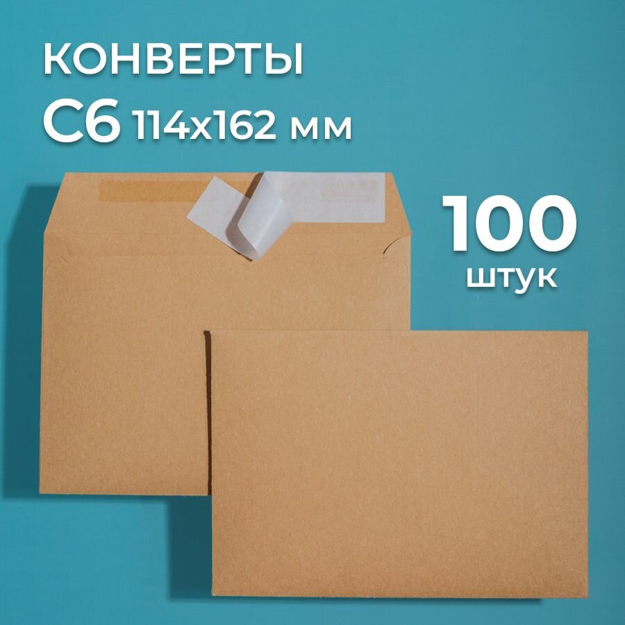 Купить Крафтовые конверты С6 (114х162 мм), набор 100 шт. / бумажные конверты со стрип лентой CardsLike