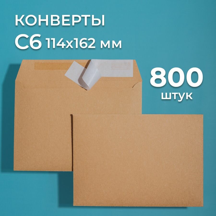 Купить Крафтовые конверты С6 (114х162 мм), набор 800 шт. / бумажные конверты со стрип лентой CardsLike