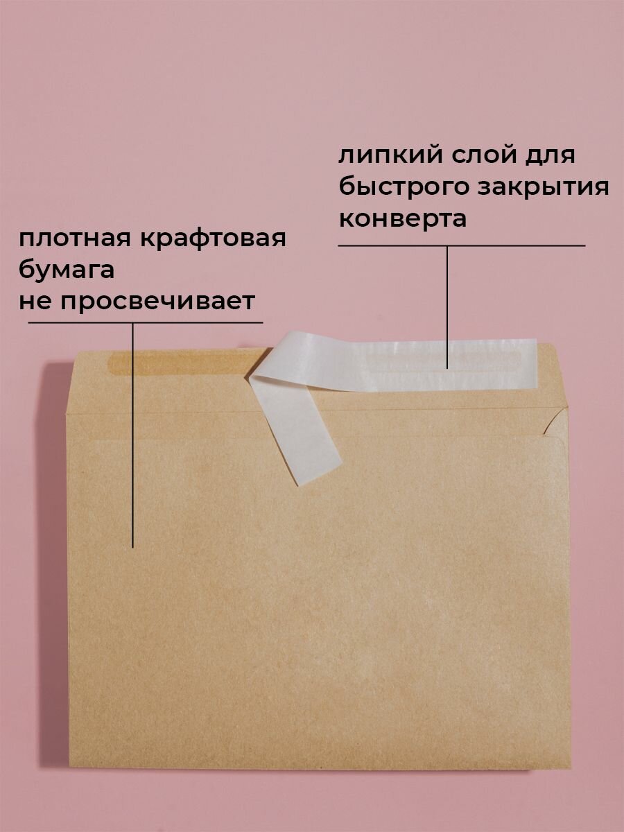 Крафтовые конверты С5 (162х229 мм), набор 100 шт. / бумажные конверты со стрип лентой CardsLike