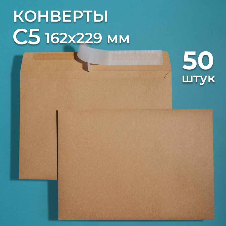 Купить Крафтовые конверты С5 (162х229 мм), набор 50 шт. / бумажные конверты со стрип лентой CardsLike