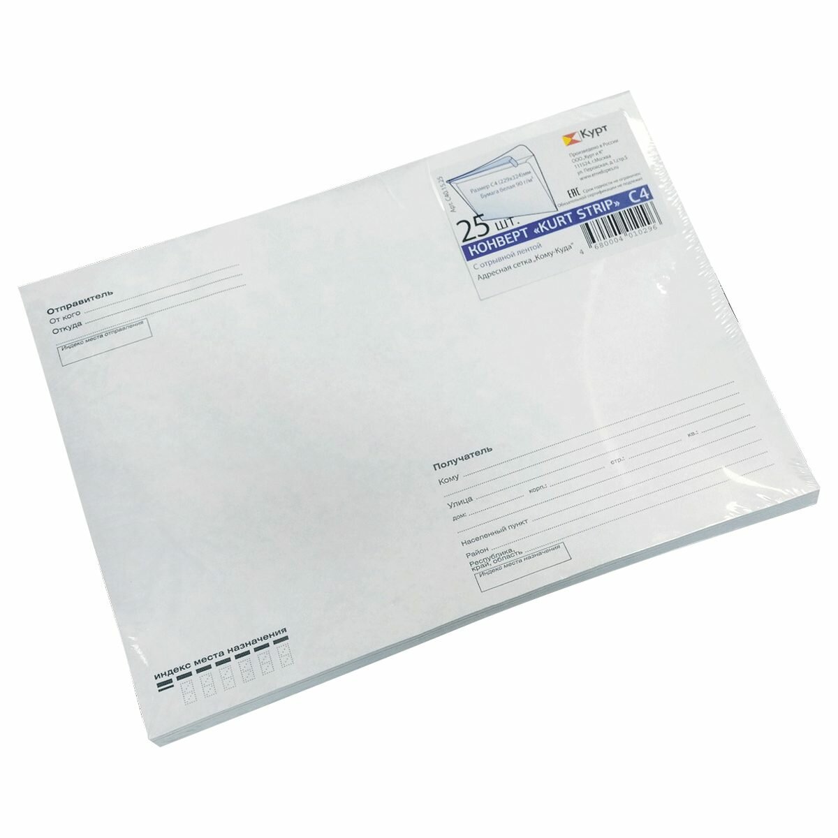 Купить Конверт почтовый С5 KurtStrip (162x229мм, 80г, отрывная лента, печать "Куда-Кому") белый, 25шт. (С50.15.25)